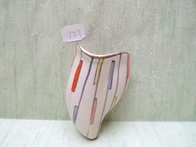 Keramik Wandvase creme bunt geschwungen Art Deco Goldrand ca 11,5cm