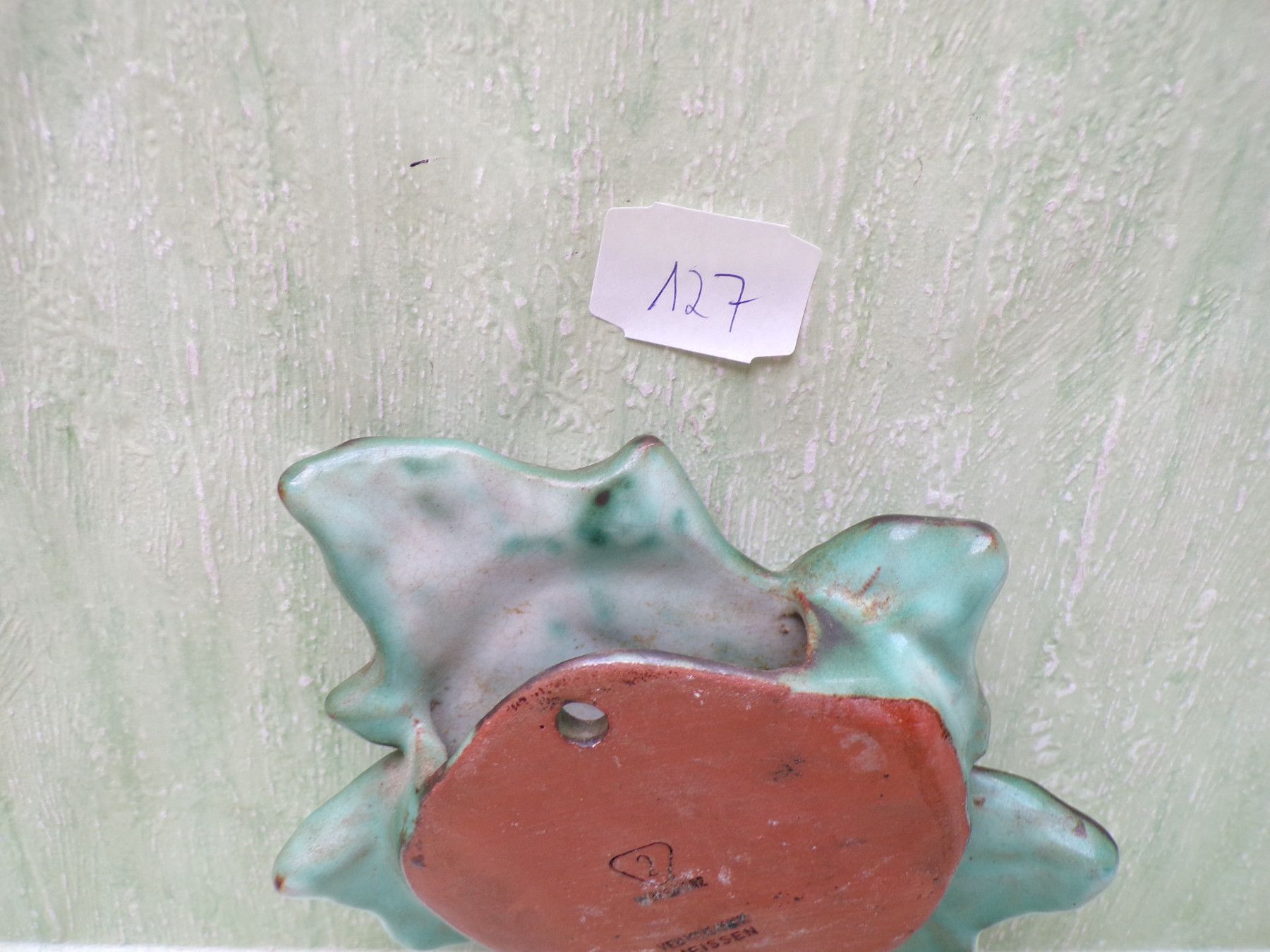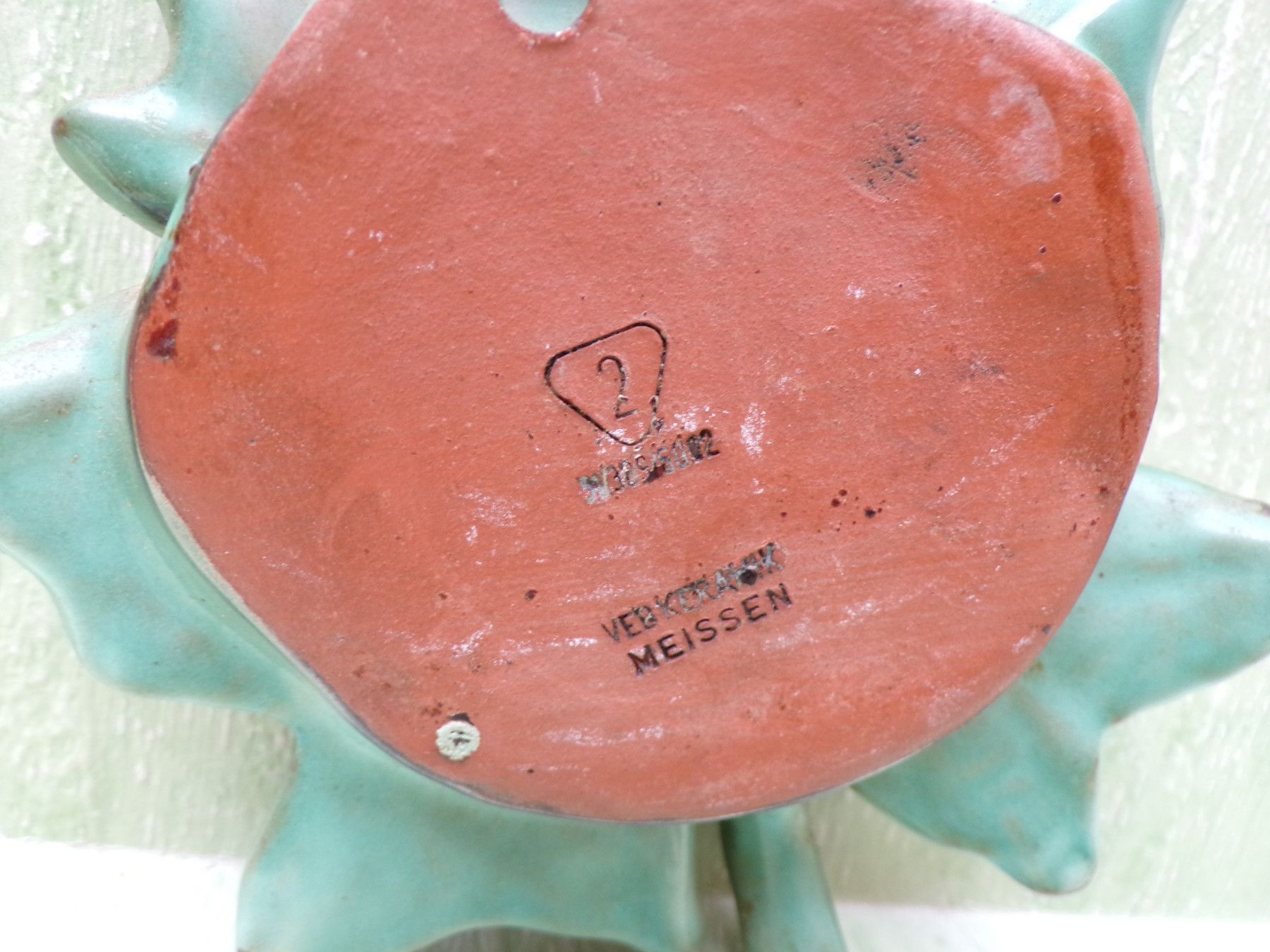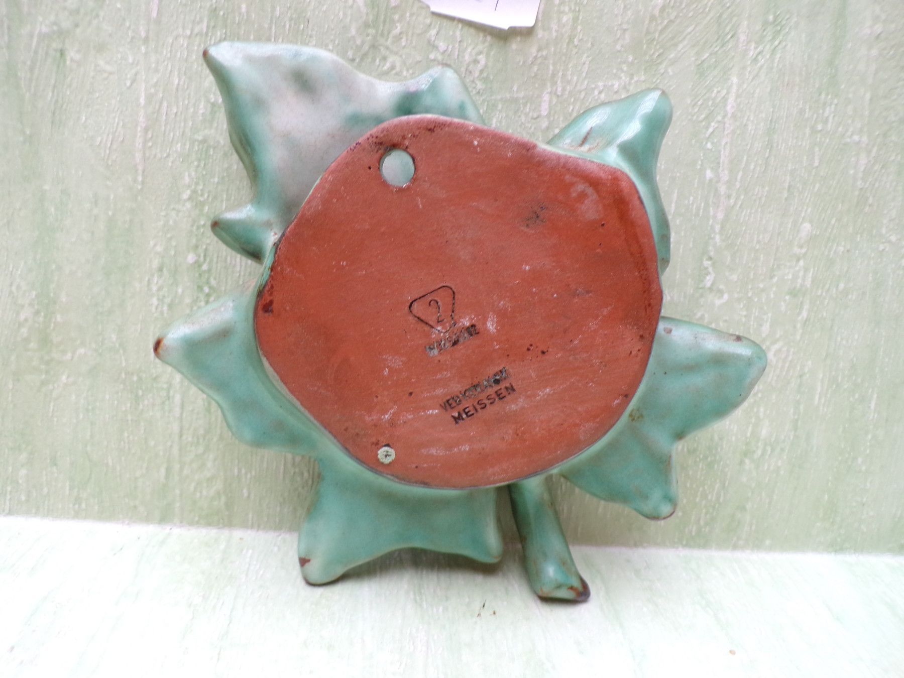Keramik Wandvase VEB Meissen DDR Blatt grün ca 15cm