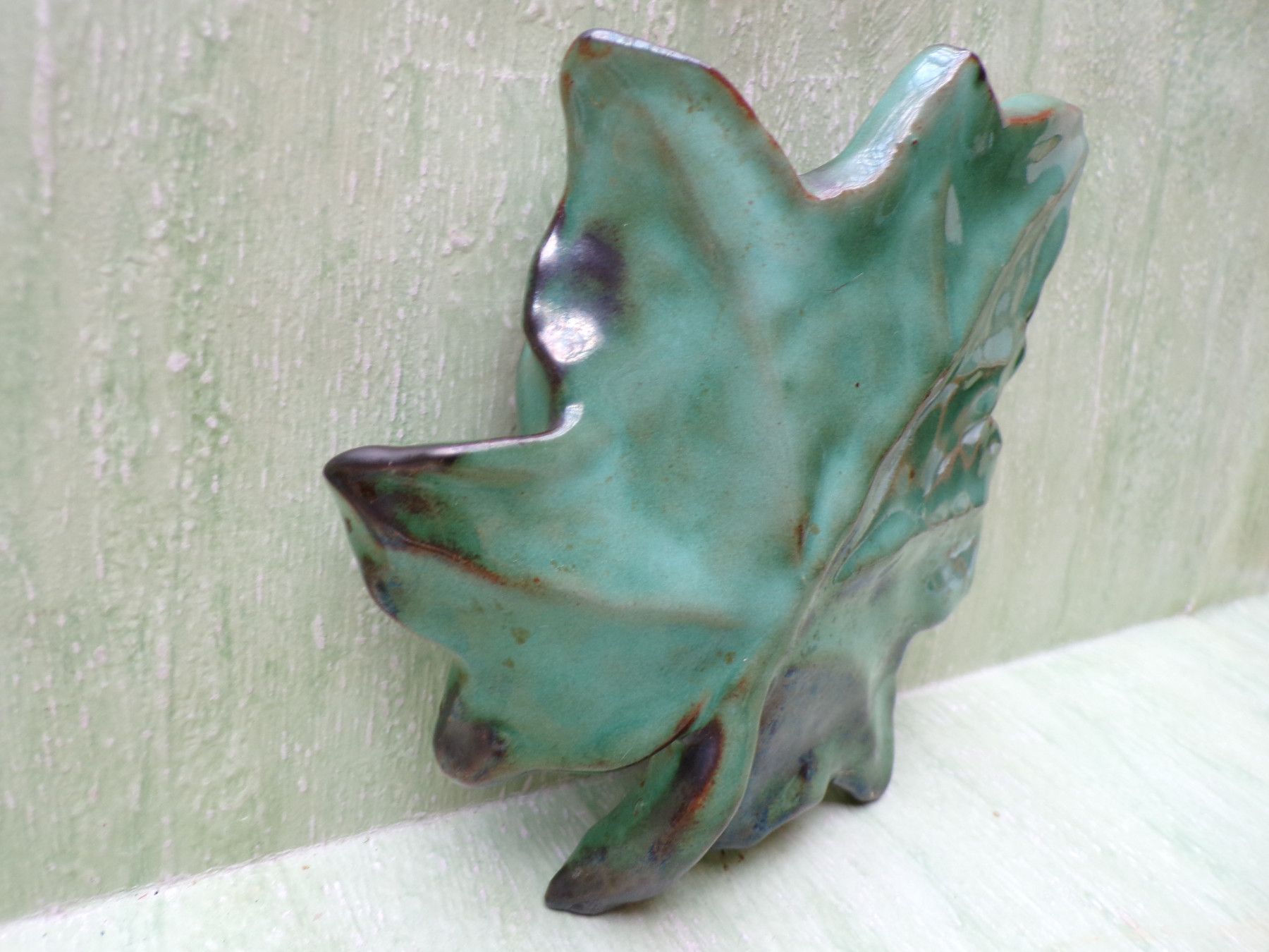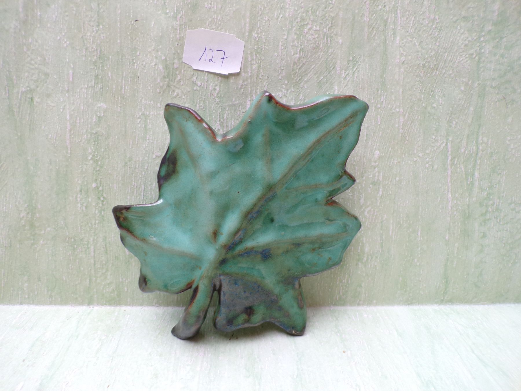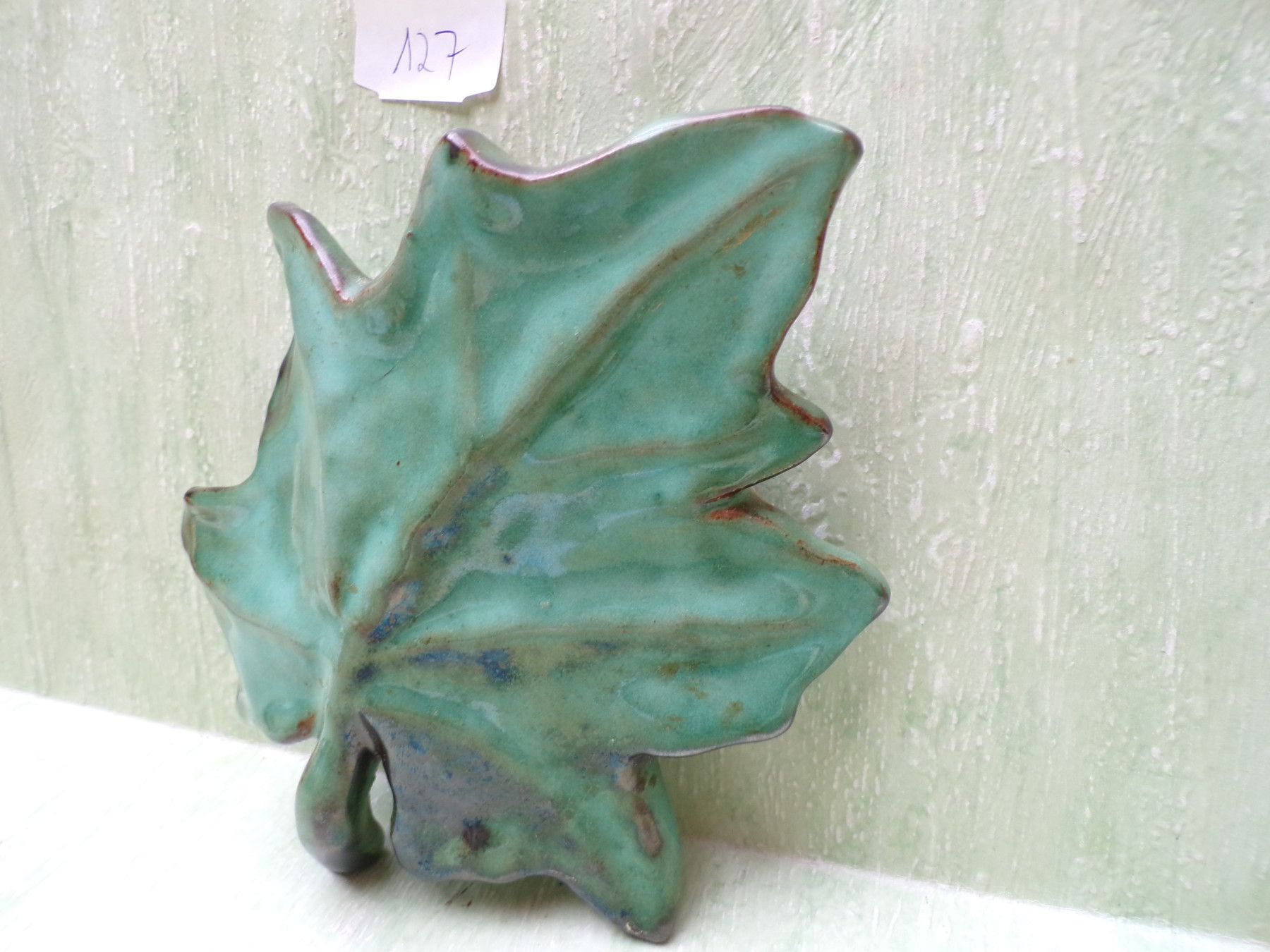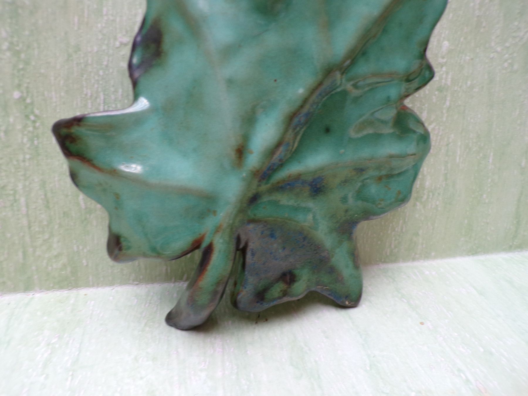 Keramik Wandvase VEB Meissen DDR Blatt grün ca 15cm