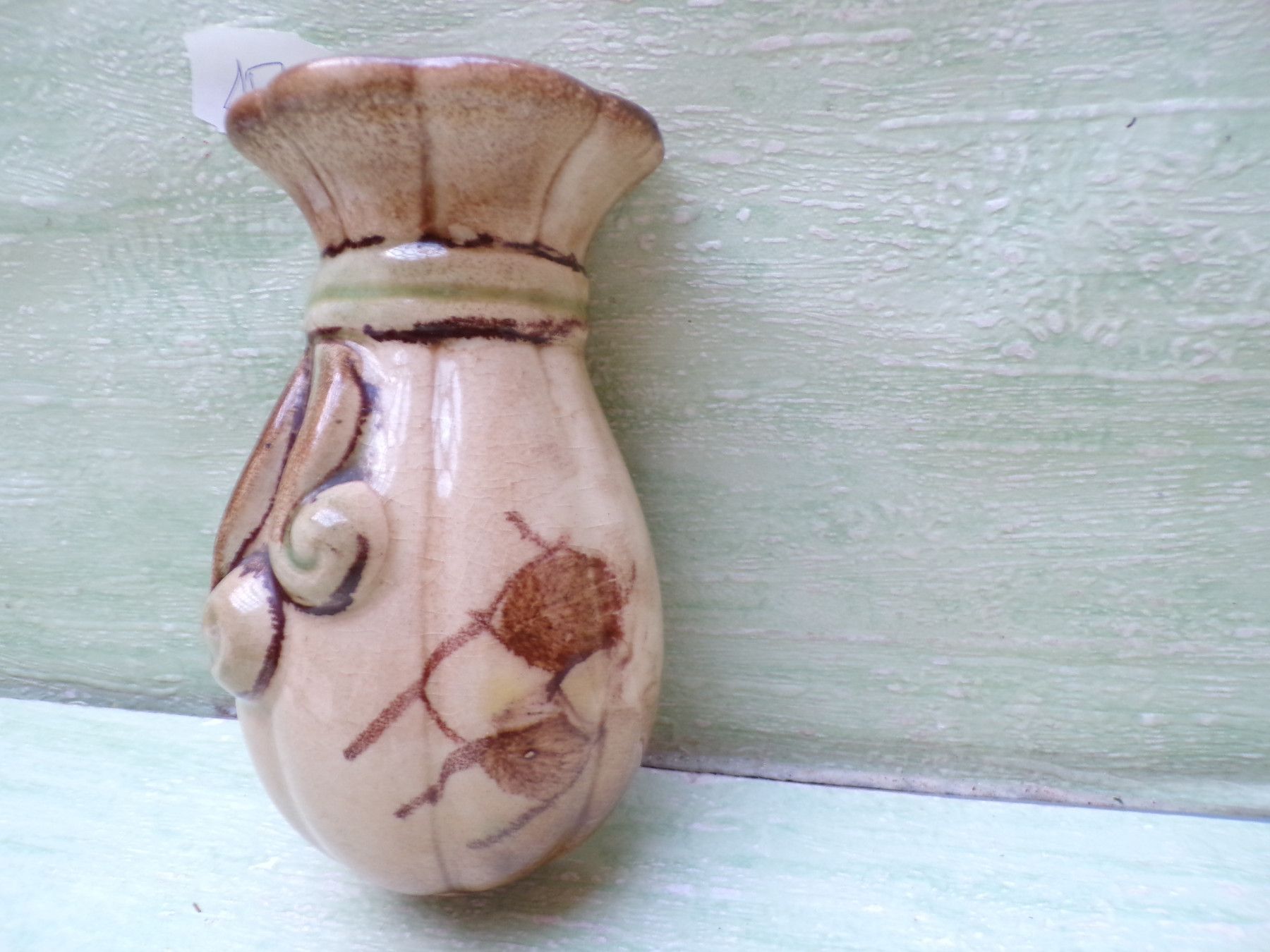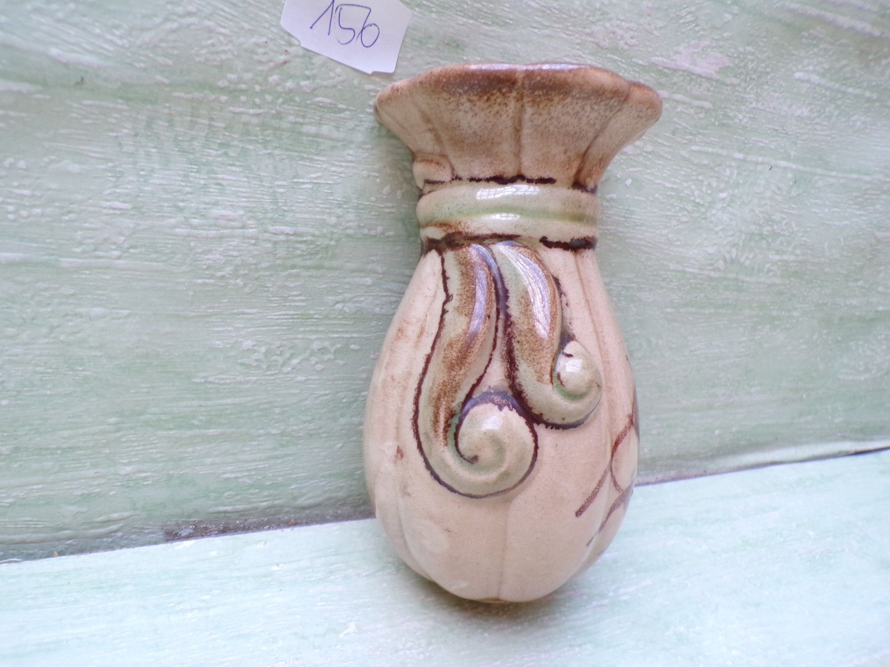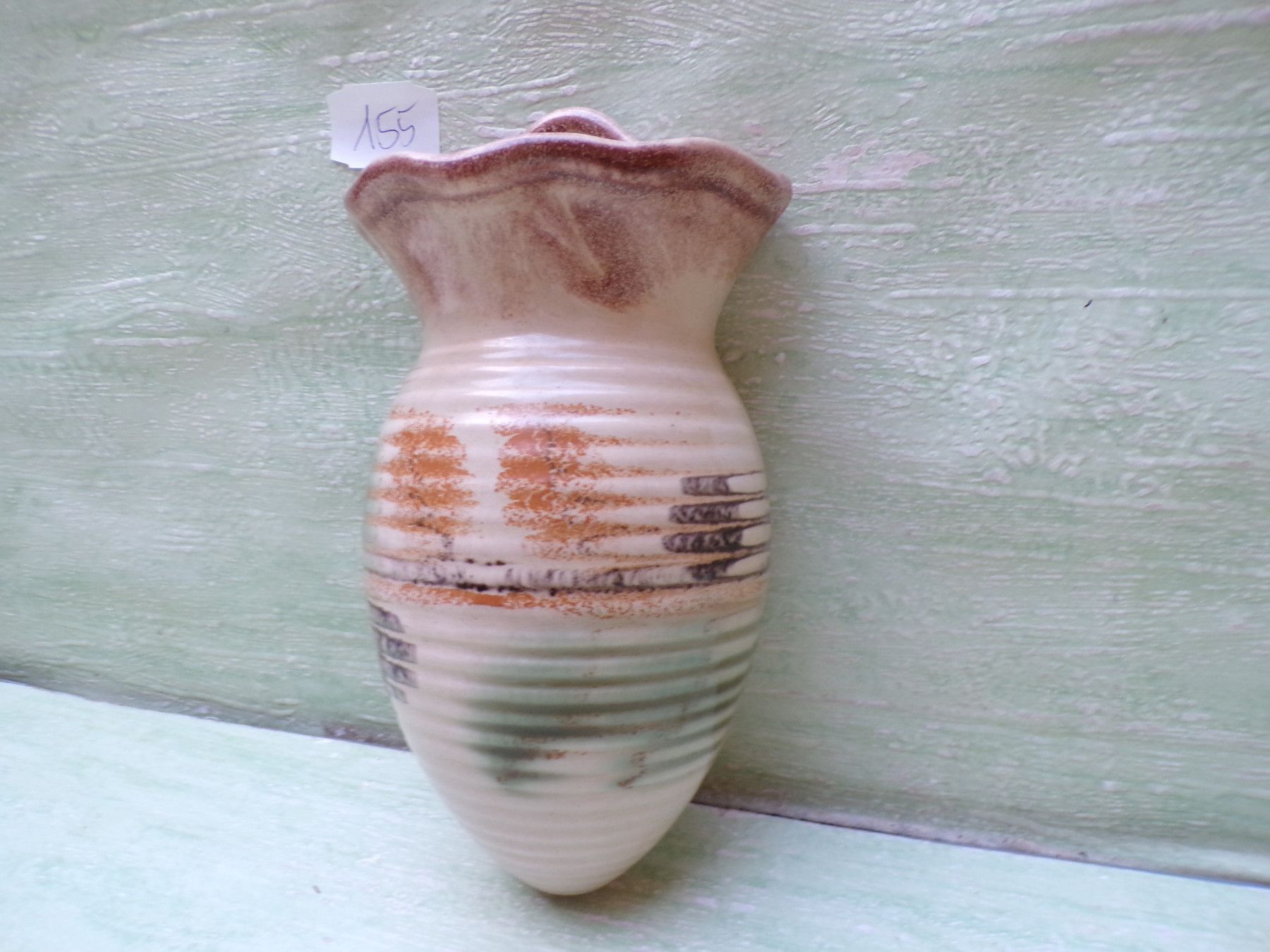 Keramik Wandvasen mit Bodenmarke creme-braun