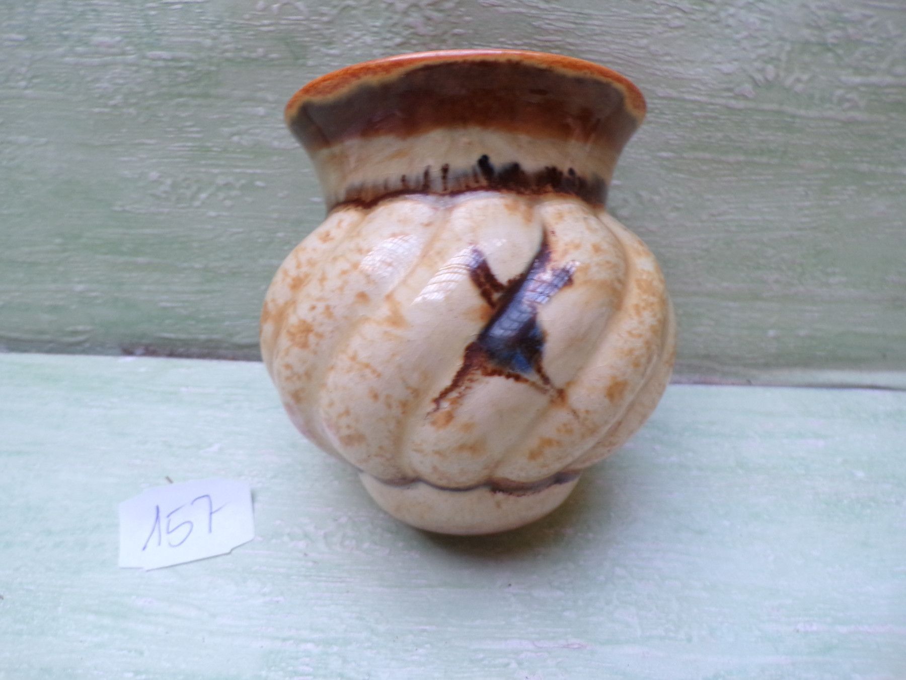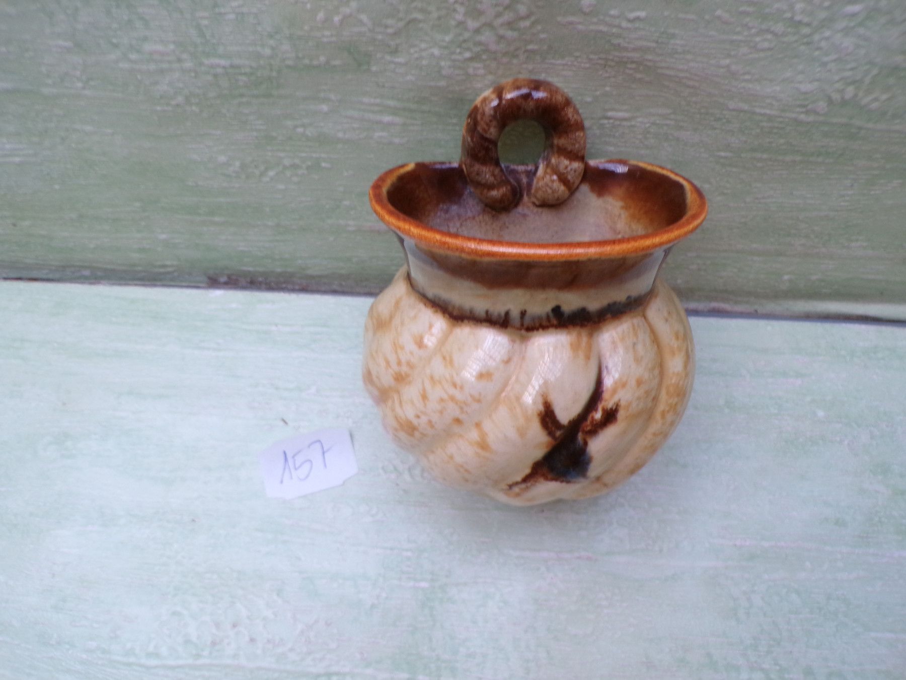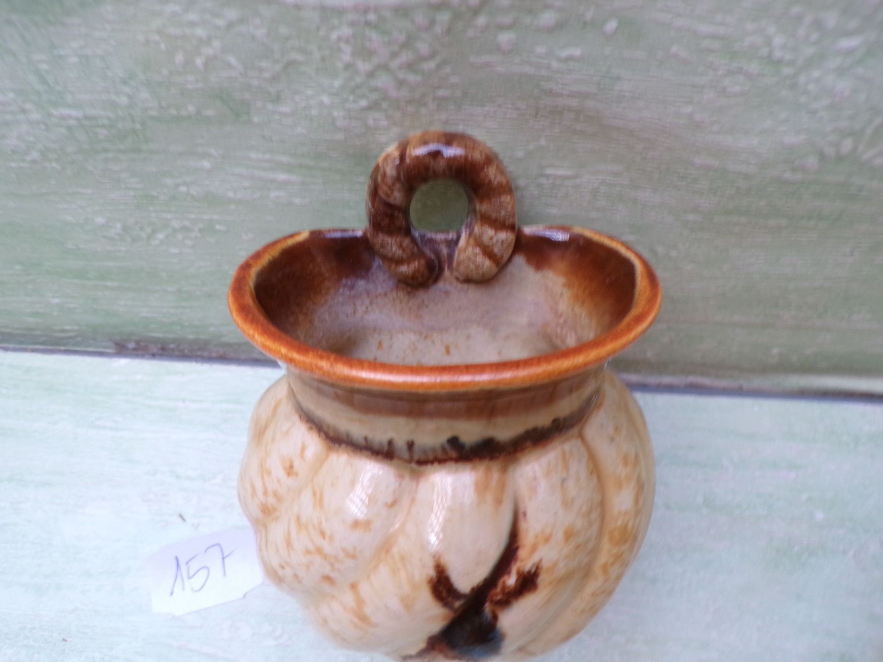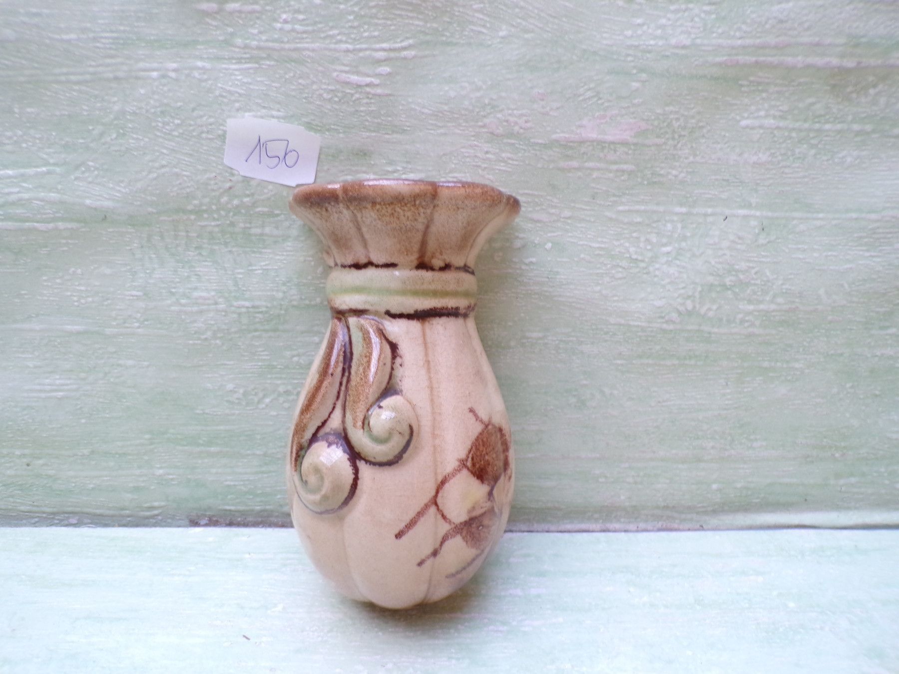 Keramik Wandvasen mit Bodenmarke creme-braun