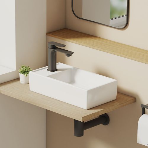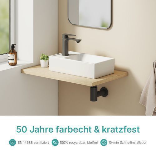 • Material: Keramik • FormEuroRechteck • Farbe: Weiß • Größe (LxBxH): 416x223x105 mm • Montage:AufsatzwaschbeckenEuro • Mit Wasserhahn-Montagelöcher:Ja Hochwertige Keramik aus Hochtemperaturbrand – stabil und formbeständig. Glatt glasierte Oberfläche – schmutz- und kratzresistent, leicht zu reinigen