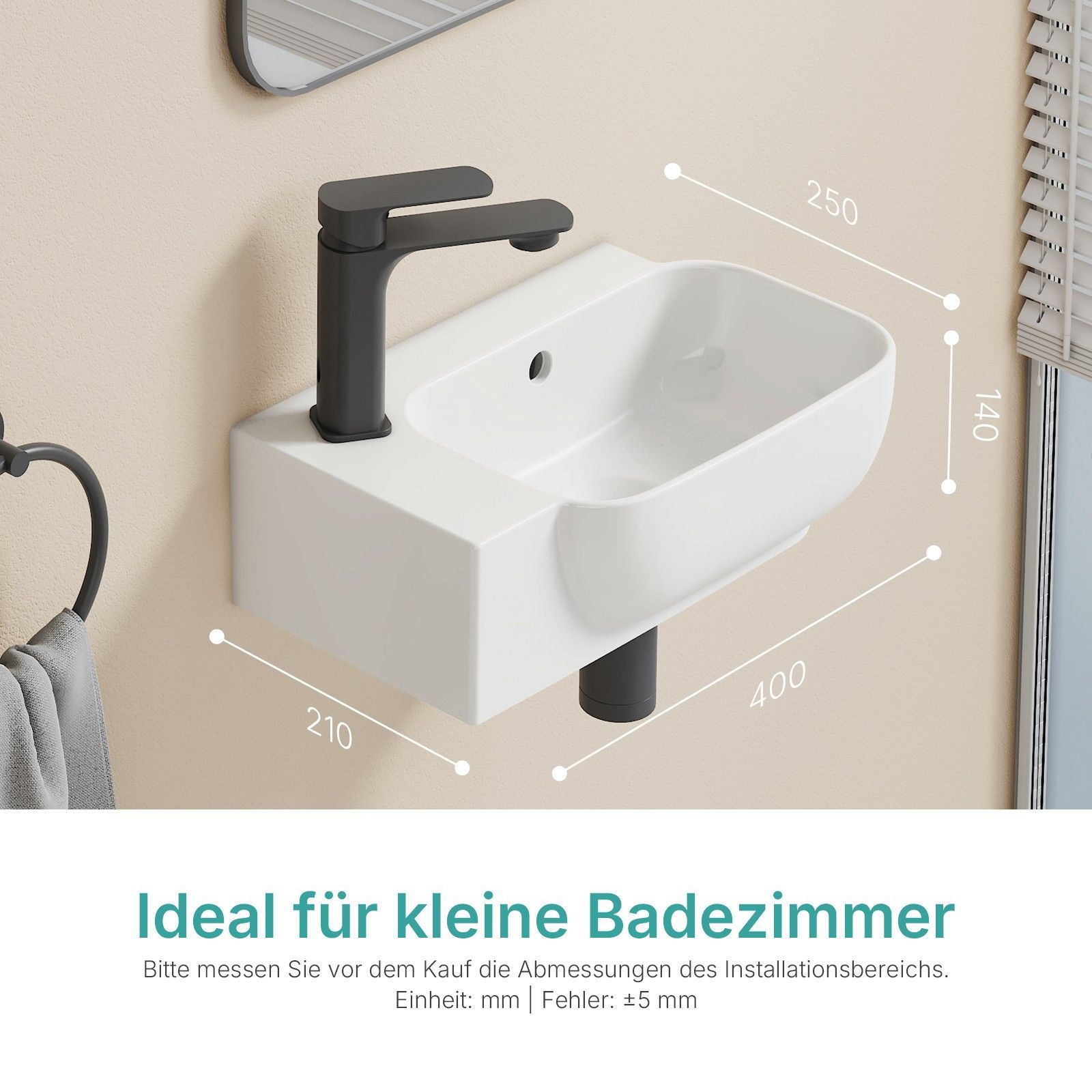 Keramik Waschbecken Wandmontage Waschtisch Rechteckig Waschschale EMKE