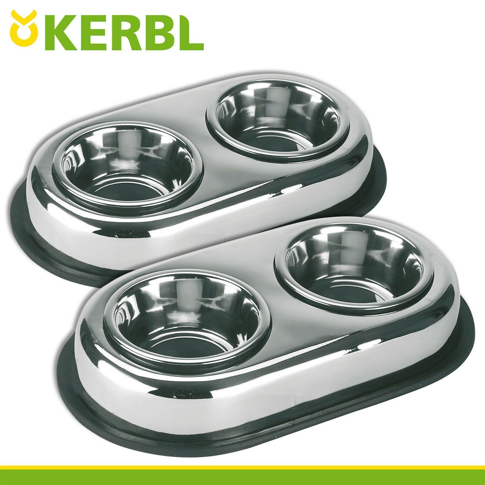 Kerbl Kerbl 2 x Edelstahlnapf Duo 2 x 450 ml rutschfest Edelstahl Doppelnapf Fressnapf