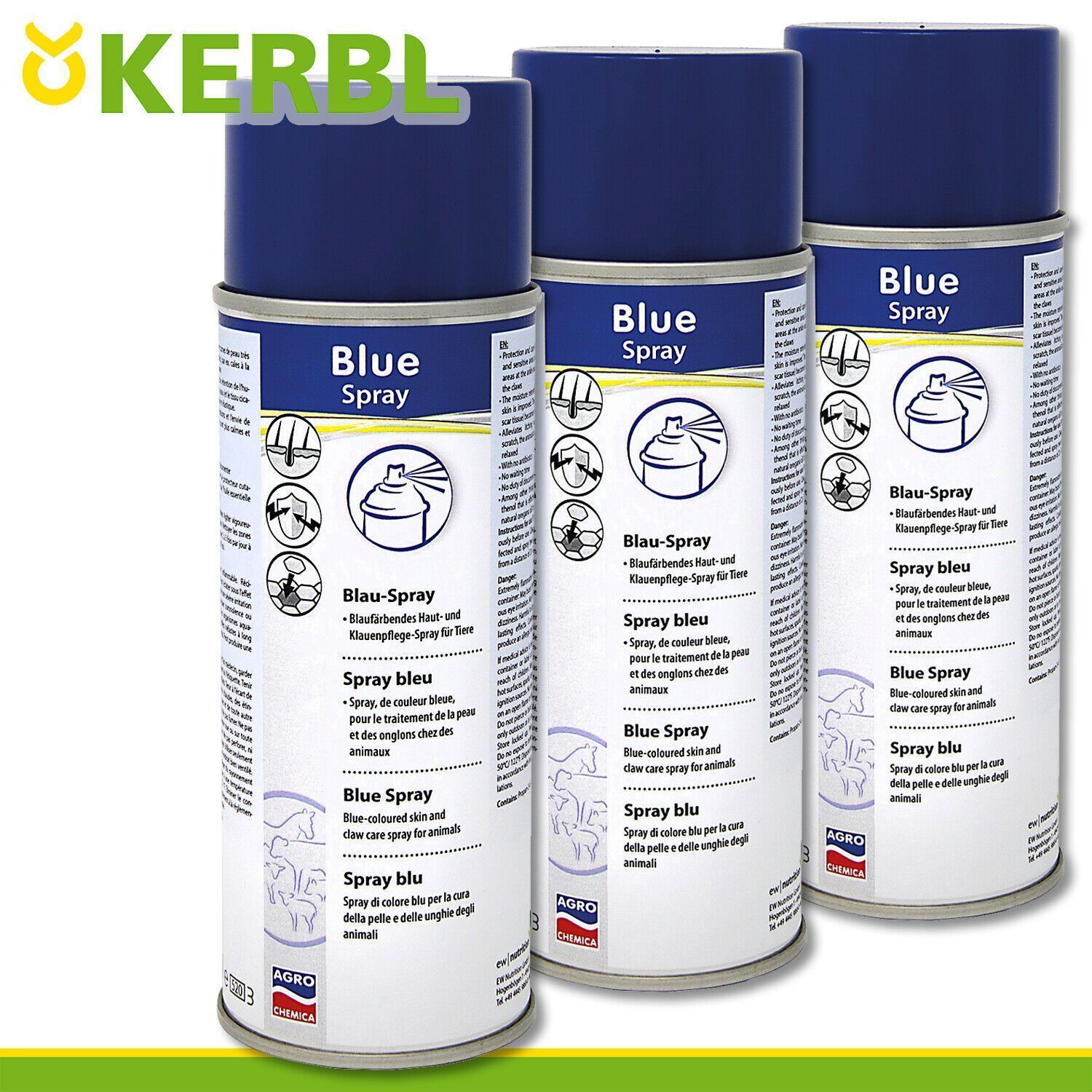 Kerbl Kerbl 3x 400ml Hautpflege Blau-Spray Blue Spray Narben Vieh Kühe Pferde Heilung