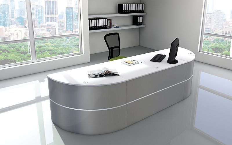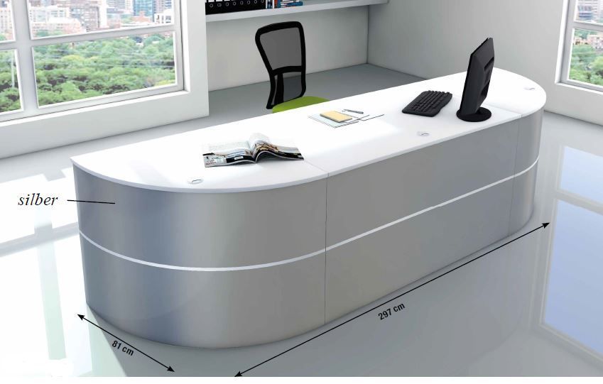 Kerkmann Messe-Theke Niedrig-Theke PADUA weiß-silber 297x81x74cm