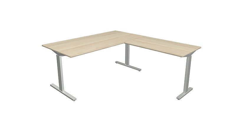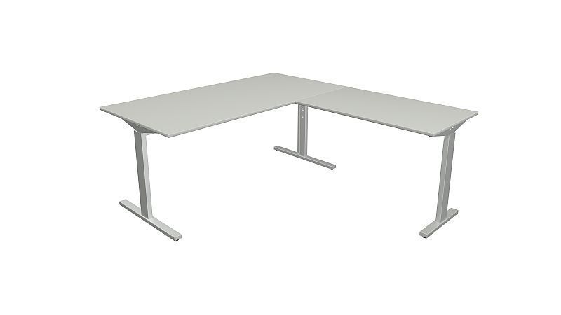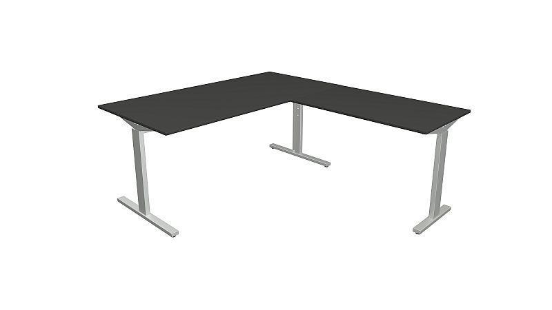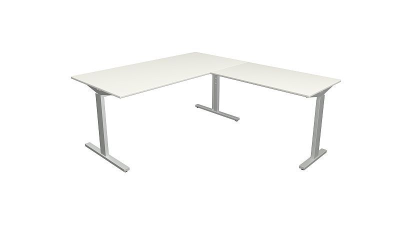 Kerkmann Schreibtisch Form 2 160x80x70-82 cm m. Anbautisch 100x60 cmT-Fuß Alusilber