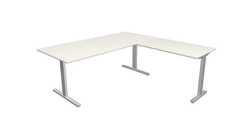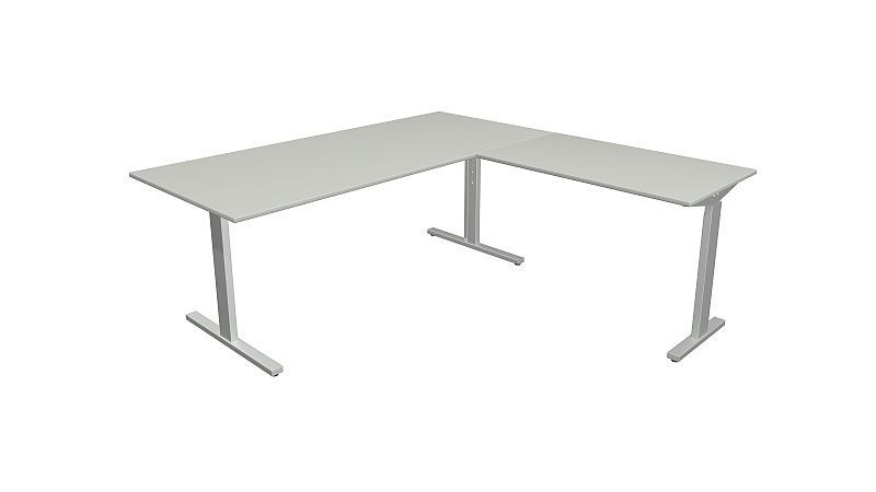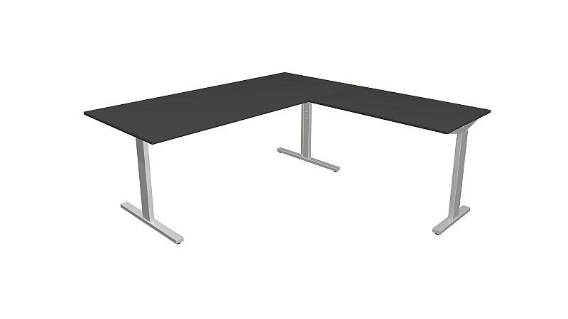 Kerkmann Schreibtisch Form 2 180x80x70-82 cm m. Anbautisch 100x60 cmT-Fuß Alusilber