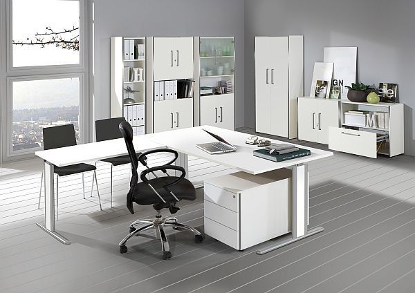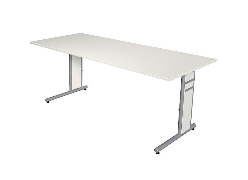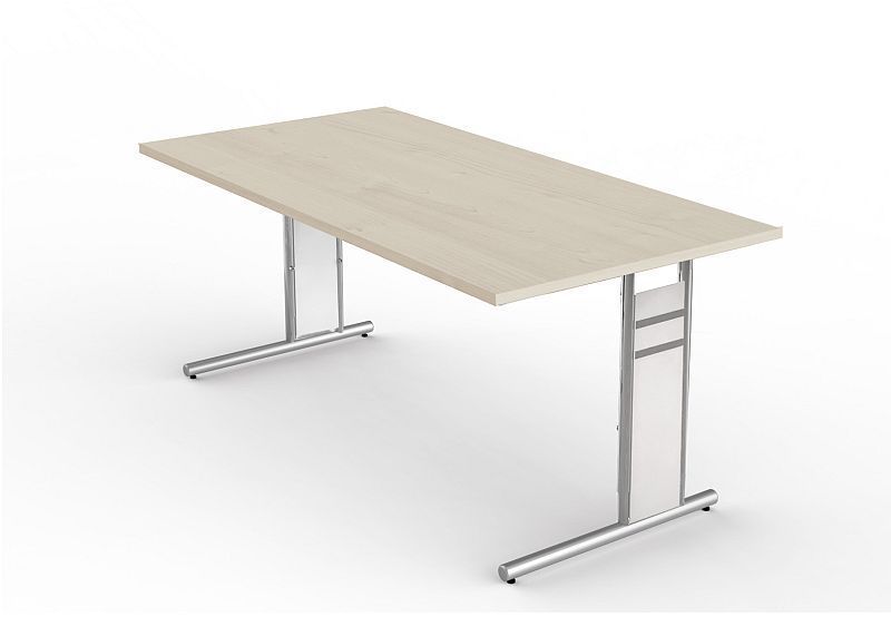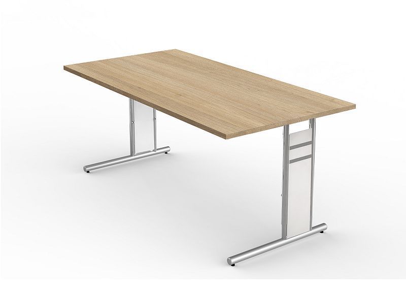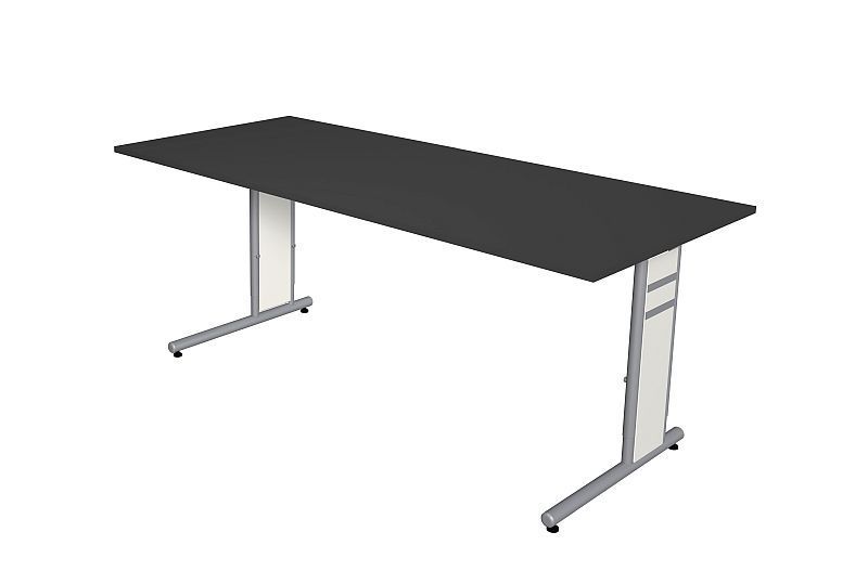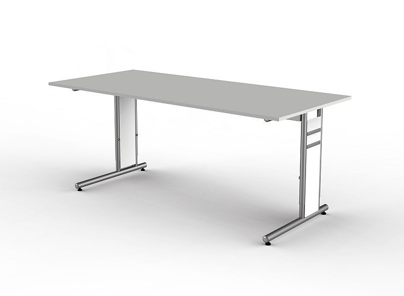 Kerkmann Schreibtisch Form 4 180x80x68-82 cm C-Fuß Alusilber Applikationen Typ C