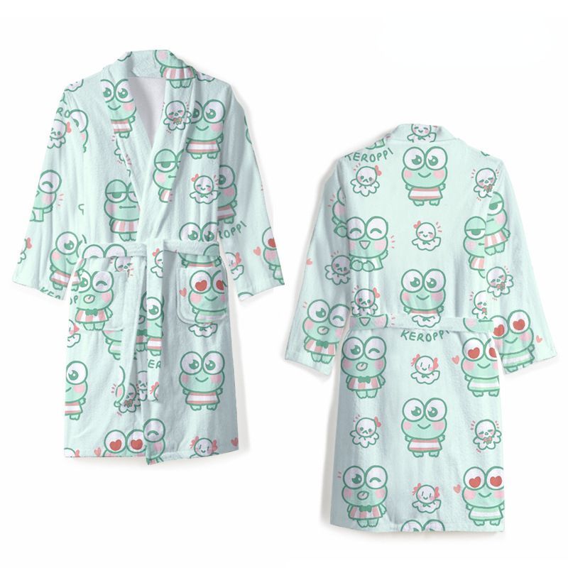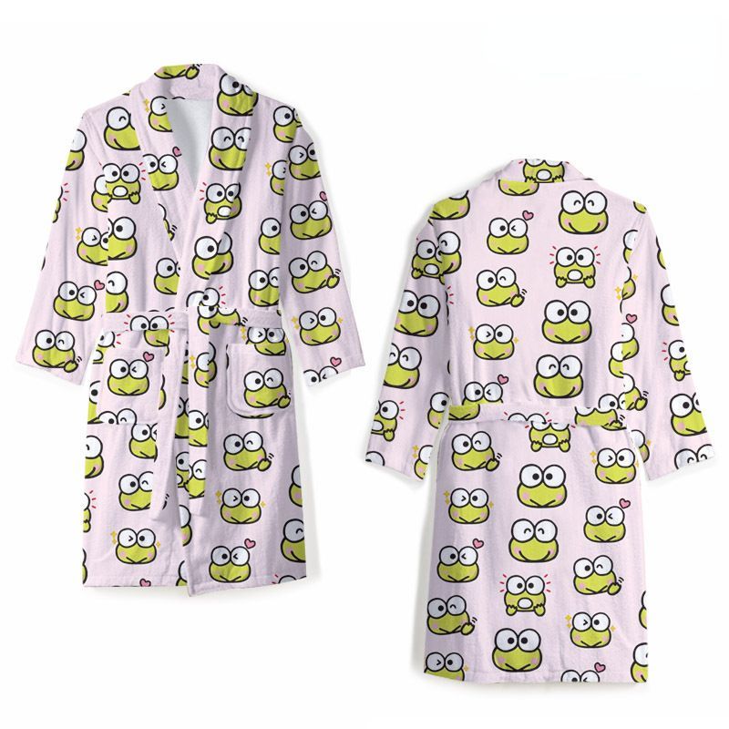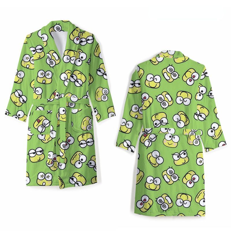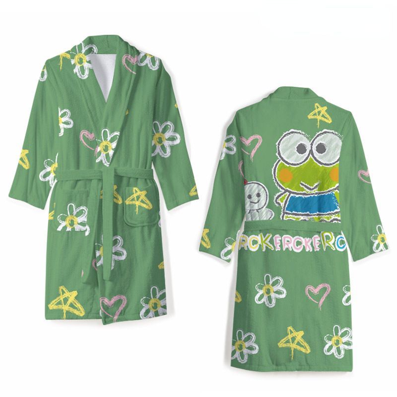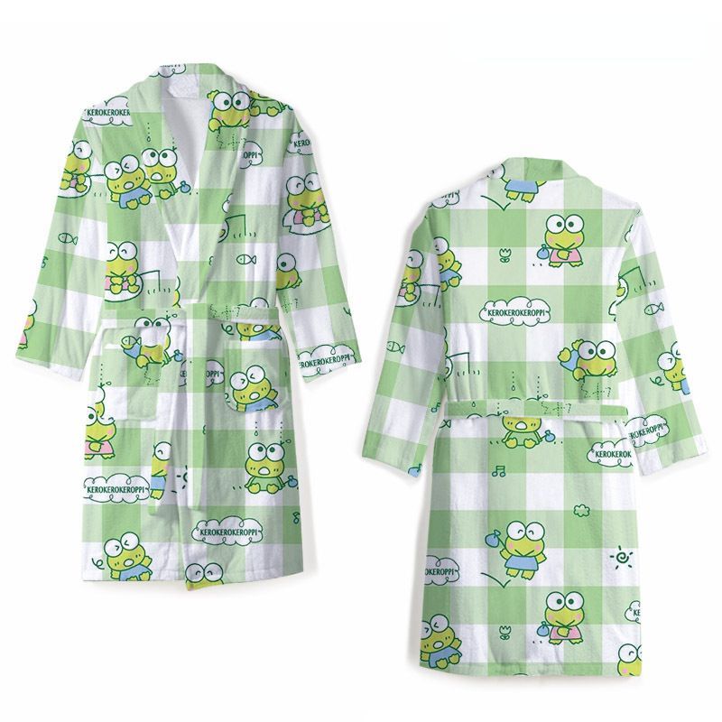 Kerokero Keroppi Merch Nachthemd Frosch Robe Flanell Pajamas mit Bund Paar Mantel