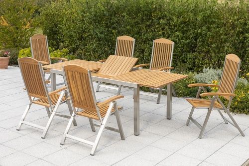 Merxx Keros Gartenmöbel Set 7tlg., Klappsessel & Ausziehtisch