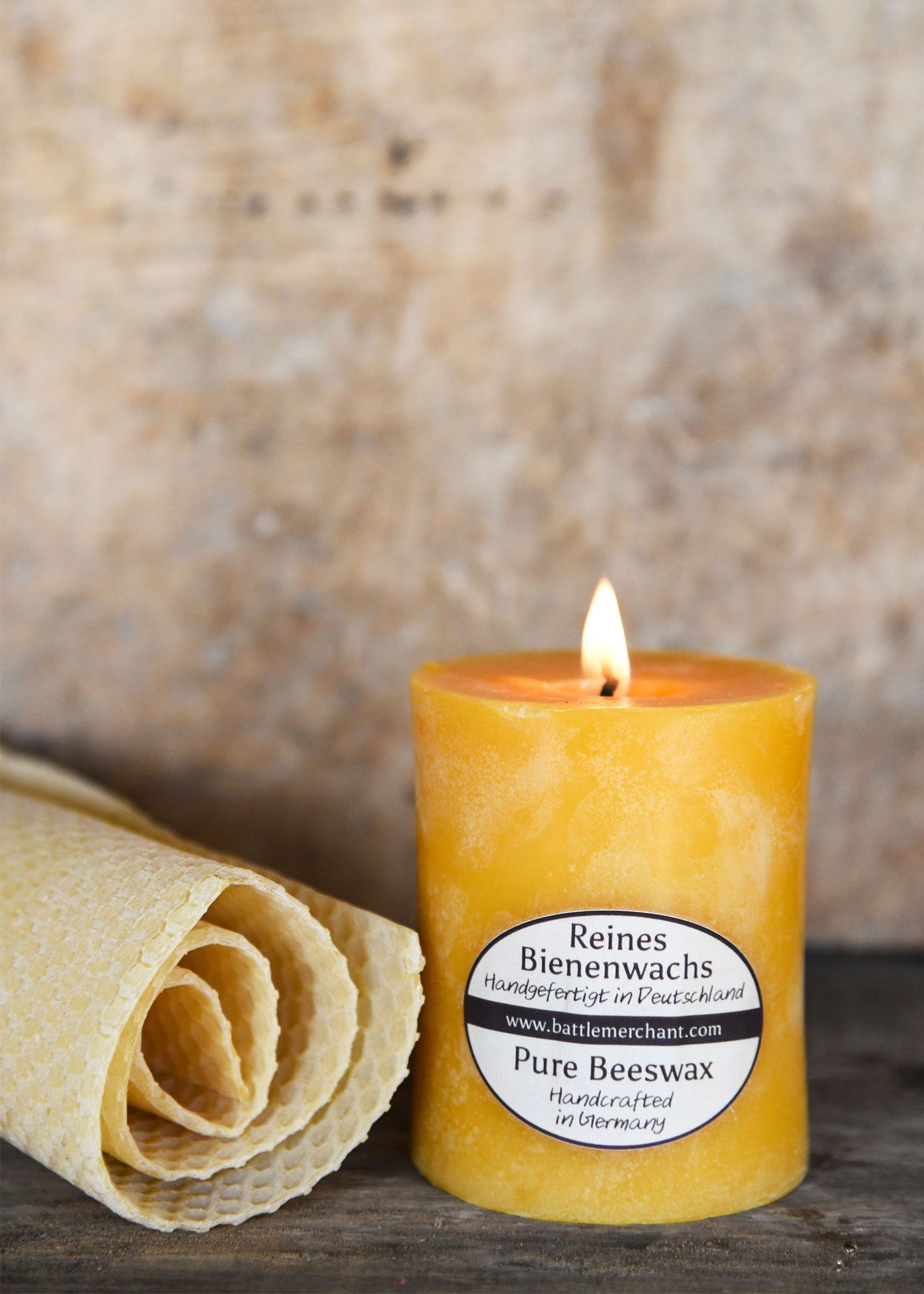 Kerze aus reinem Bienenwachs, massiv, gegossen