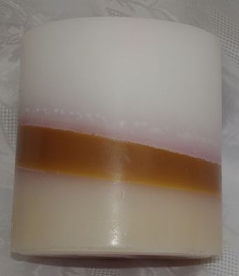• große Block-Kerze - weiß mit braunem Streifen