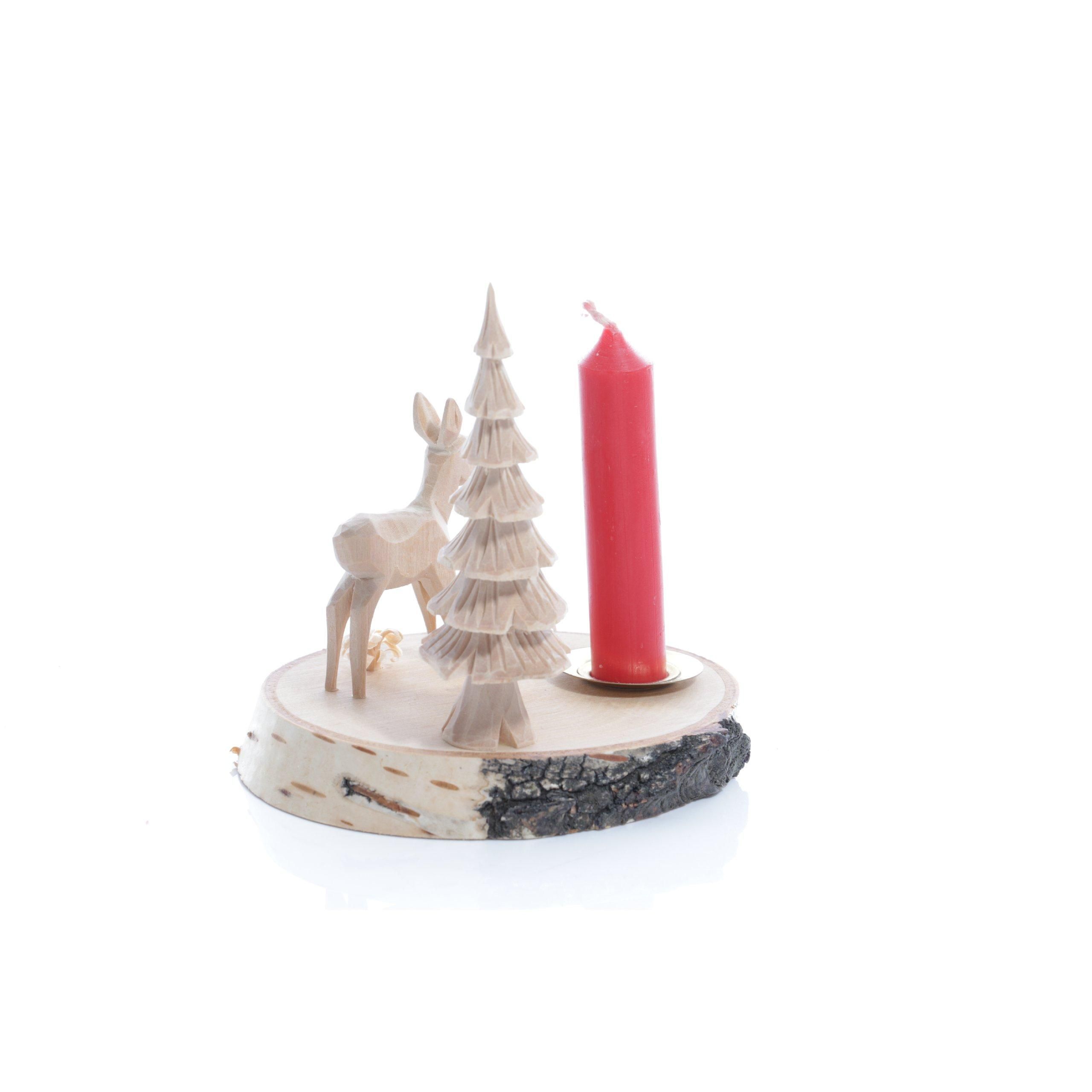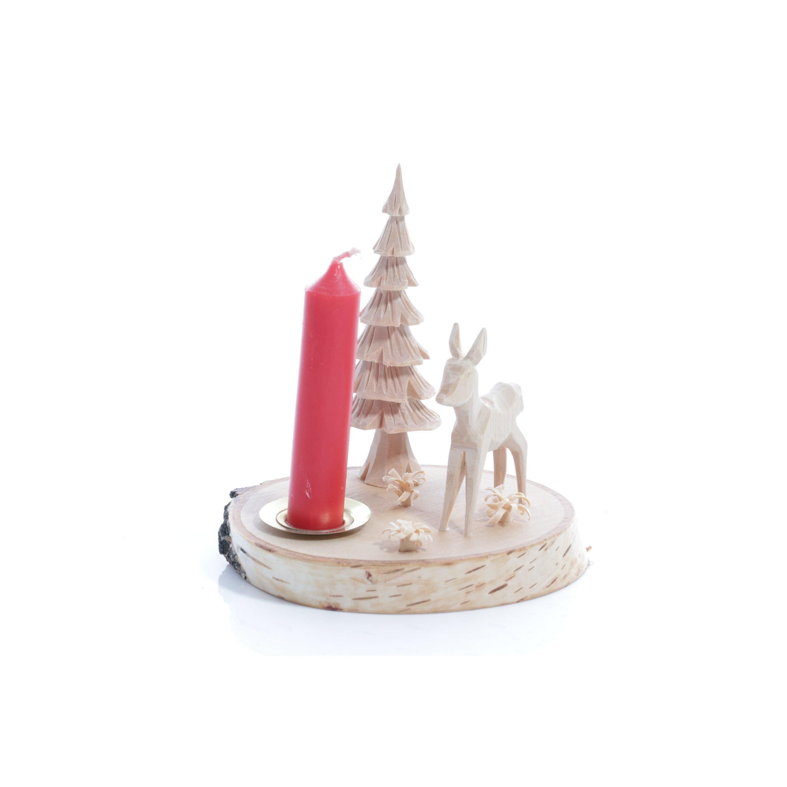 Kerzenhalter Rehbrett mit Kerze - 1 Reh stehend mit Bäumchen geschnitzt H:10cm