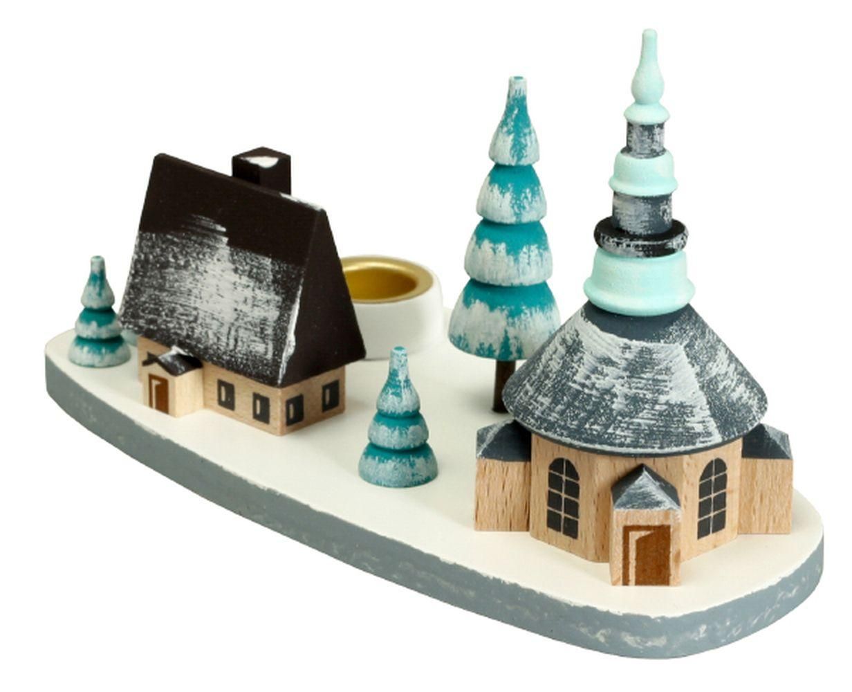Kerzenhalter Seiffener Kirche winterlich Höhe 7,5 cm NEU Weihnachten Kerze Christ