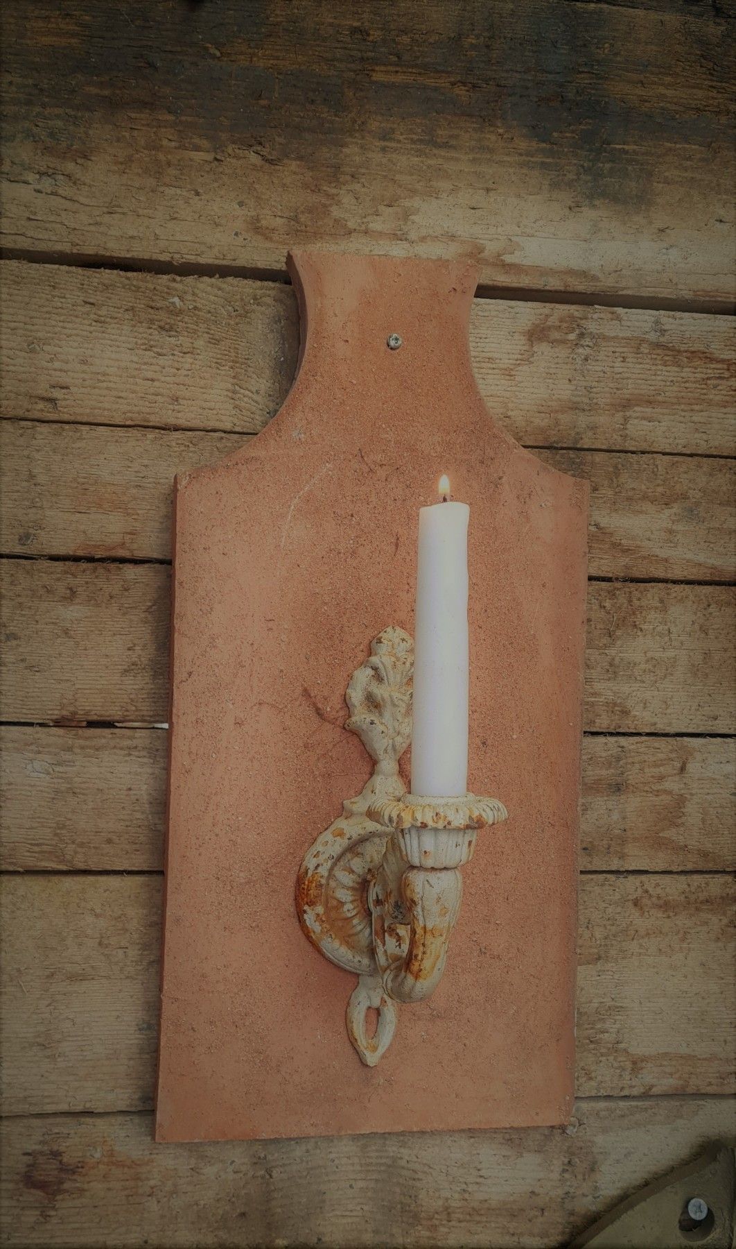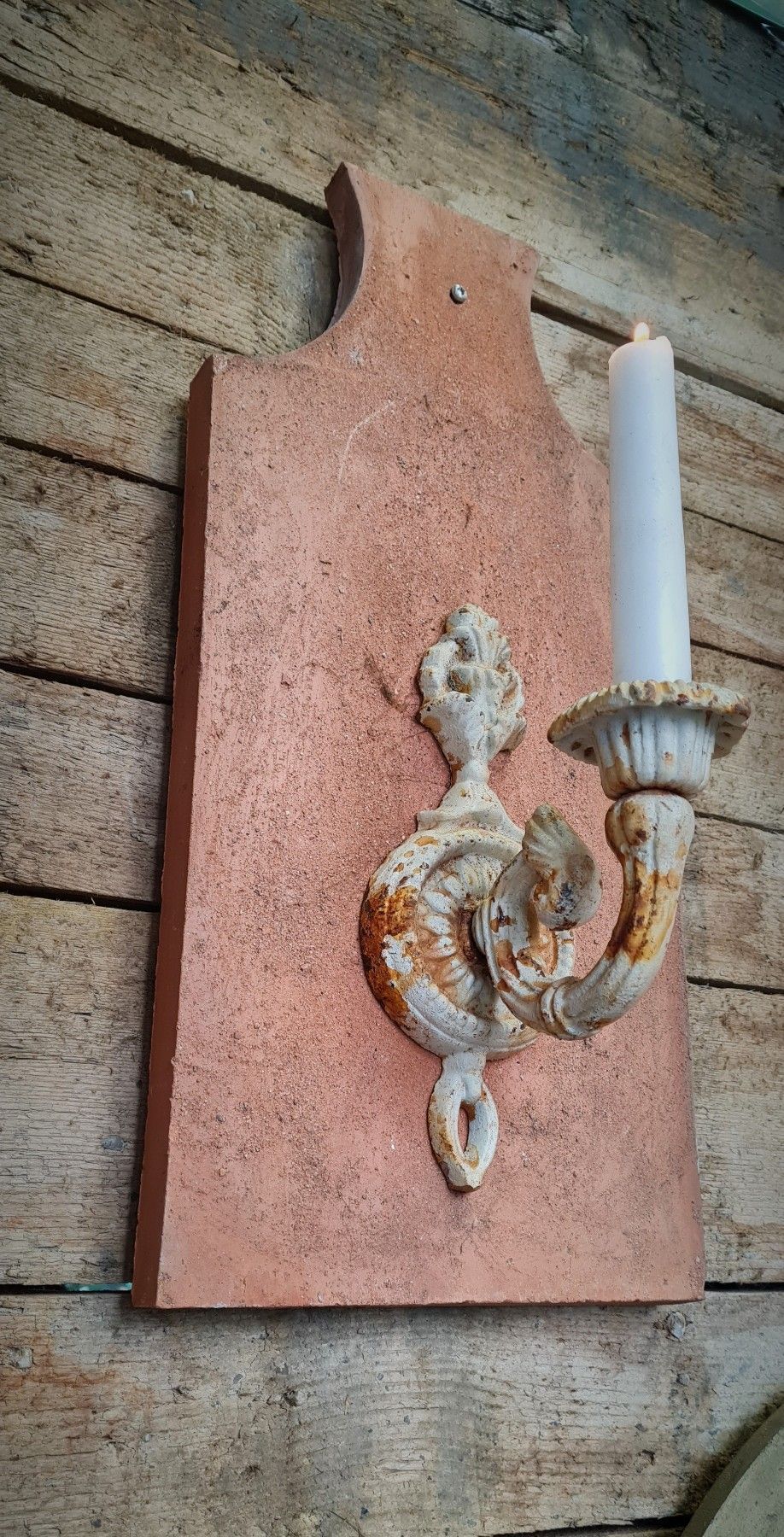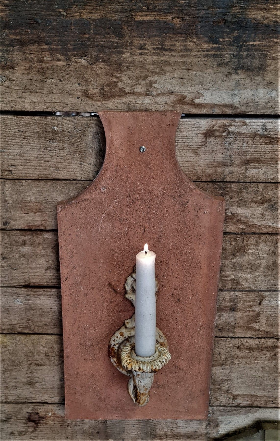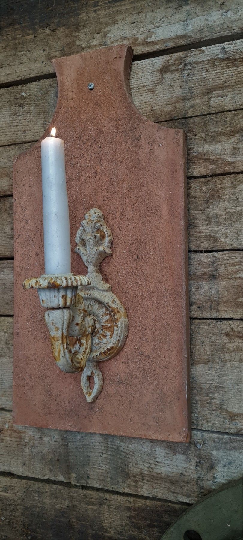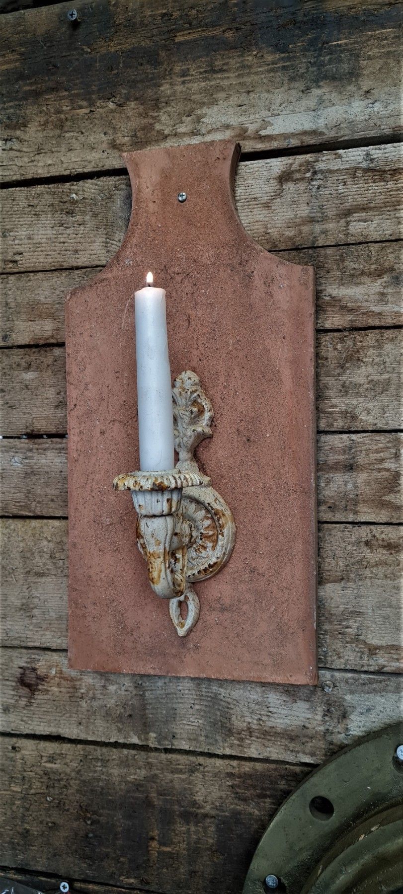 Kerzenhalter , Tonziegel, Dachziegel, Schindel, Gusseisen, Wandleuchter, Kerze