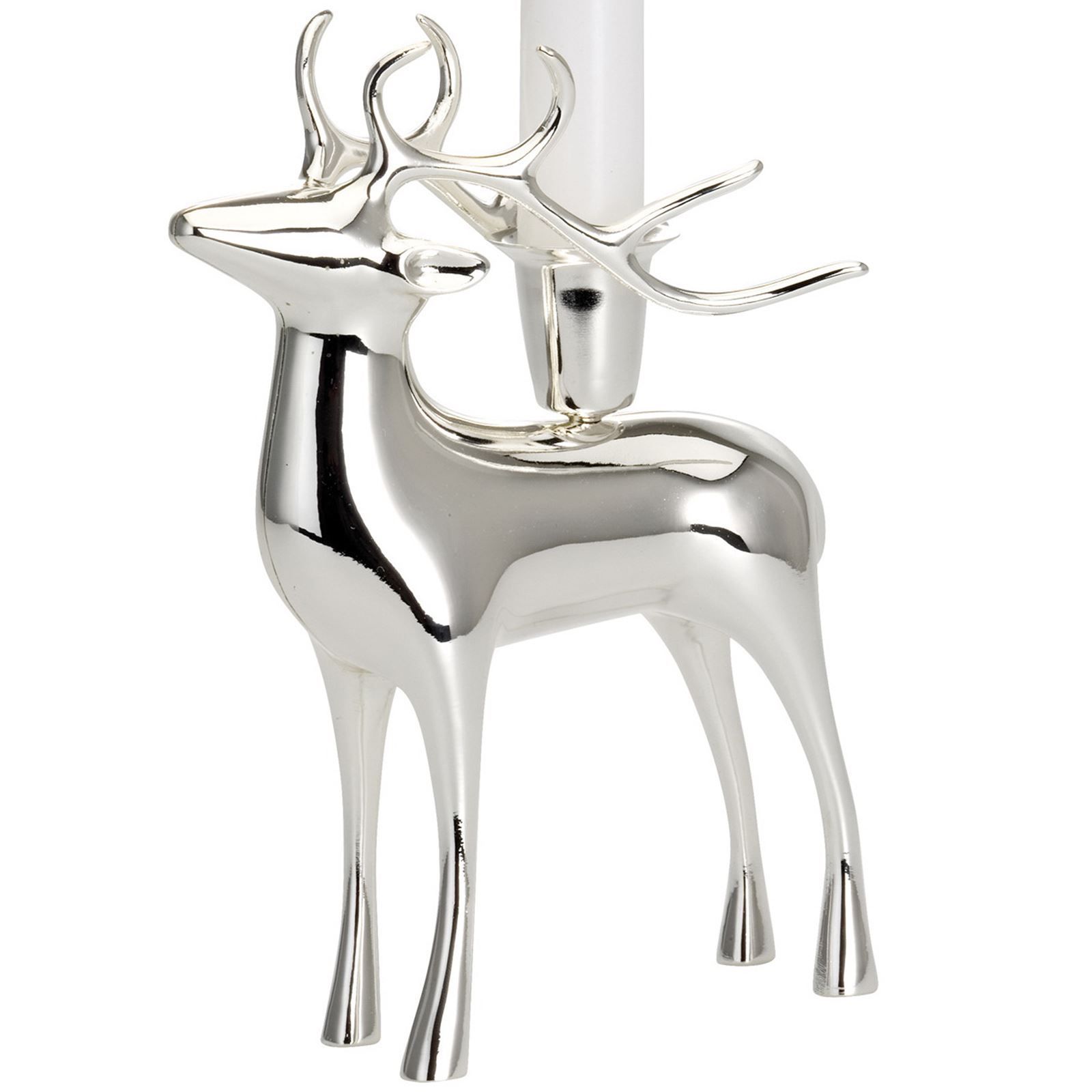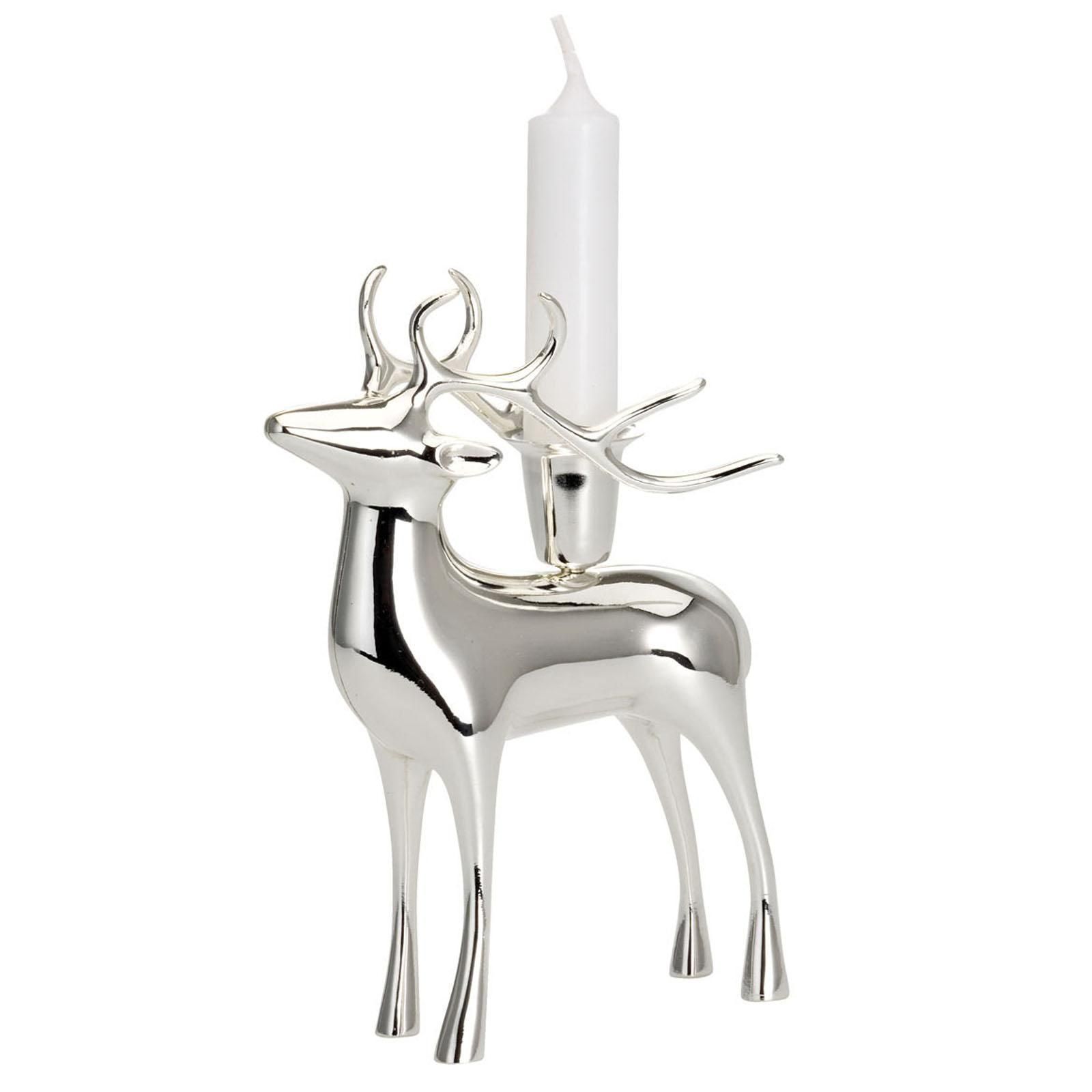 Kerzenhalter versilbert Kerzenständer 1 Stabkerze - Deko-Figur Rentier 19.5 cm