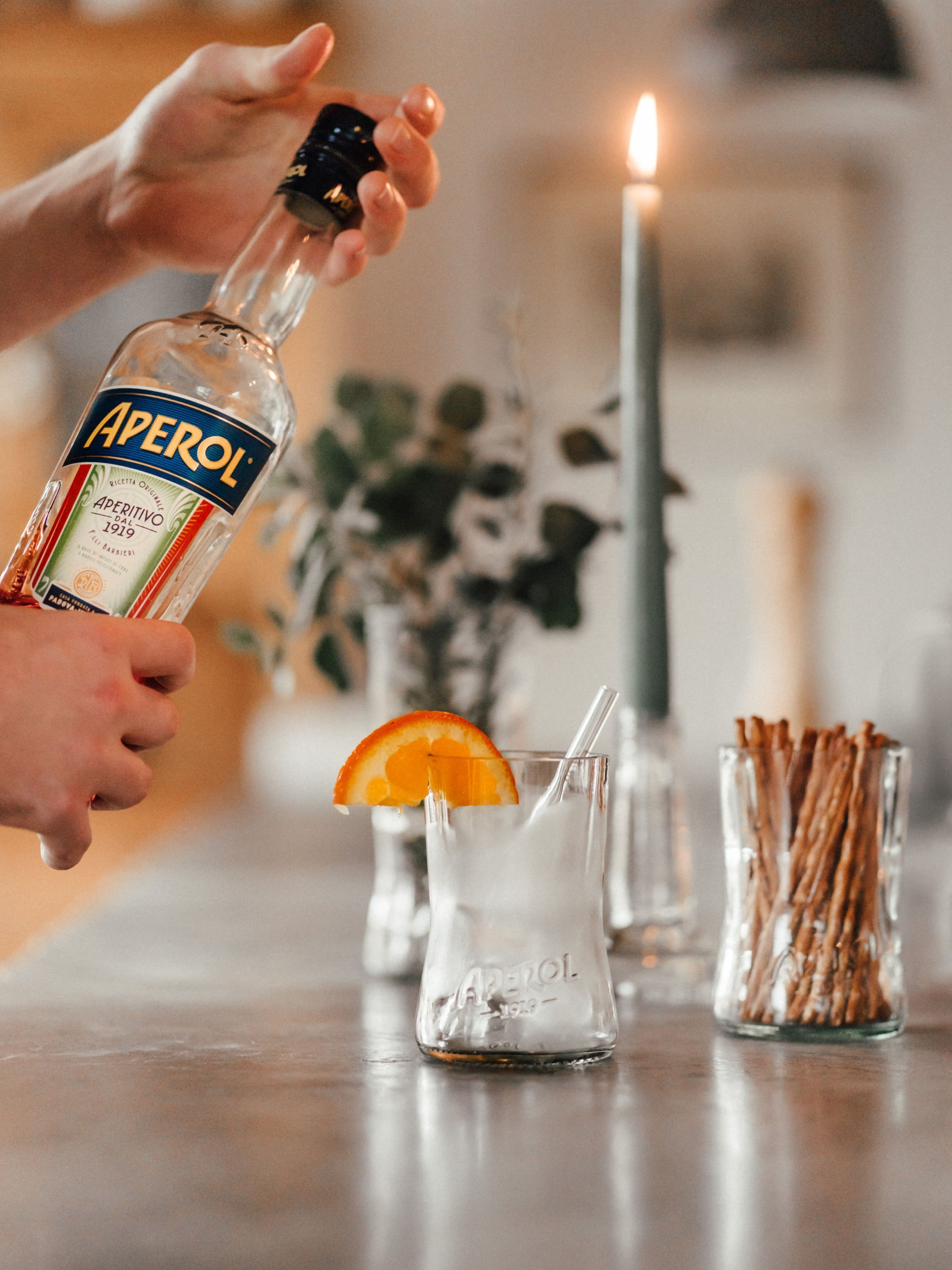Kerzenständer aus der upgecycelten Aperol Flasche - cool - nachhaltig - witzig