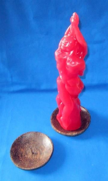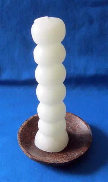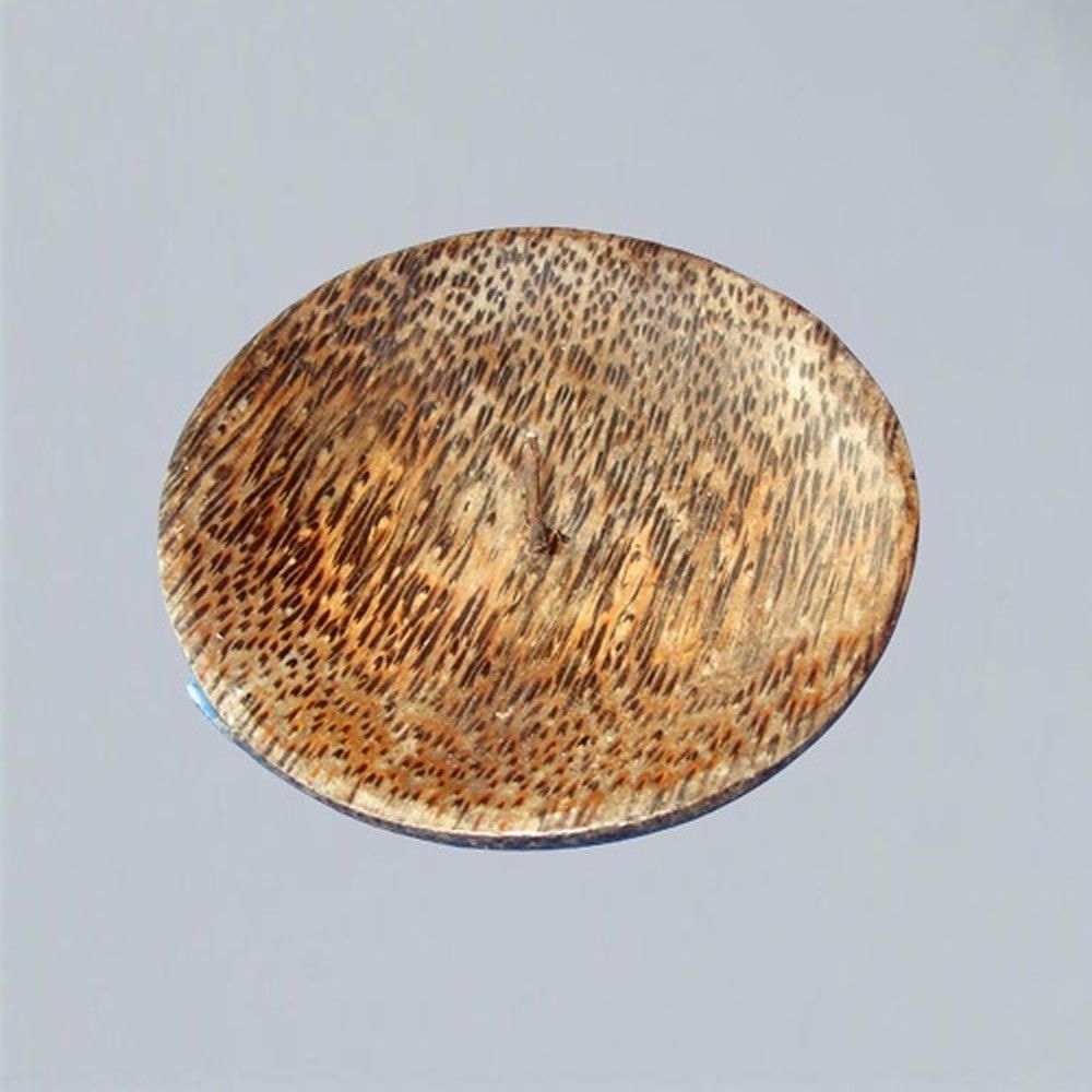 Kerzenständer aus Palmenholz, einfach, handgearbeitet. Maße: Höhe 2 cm, Durchmesser 10 cm