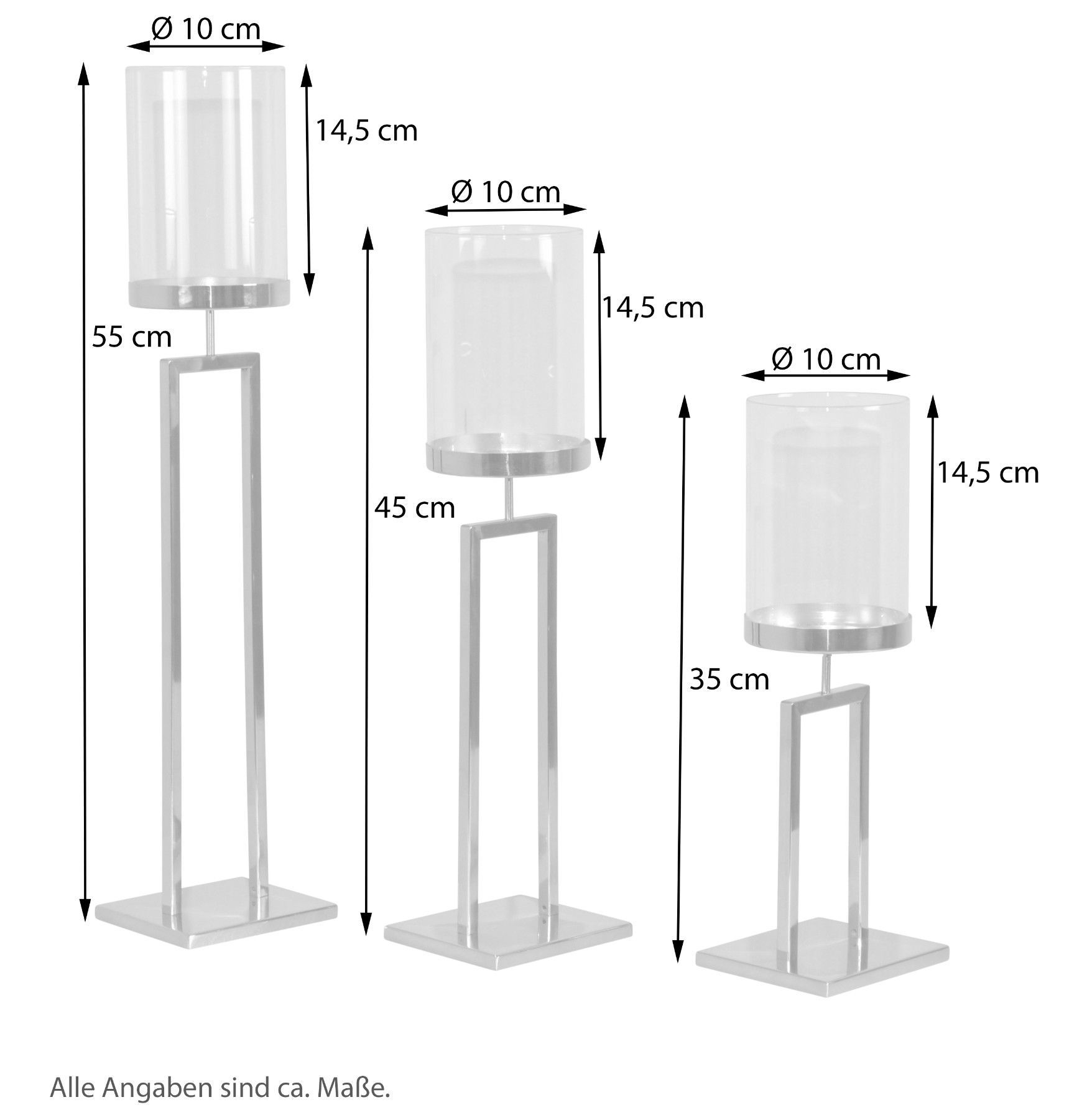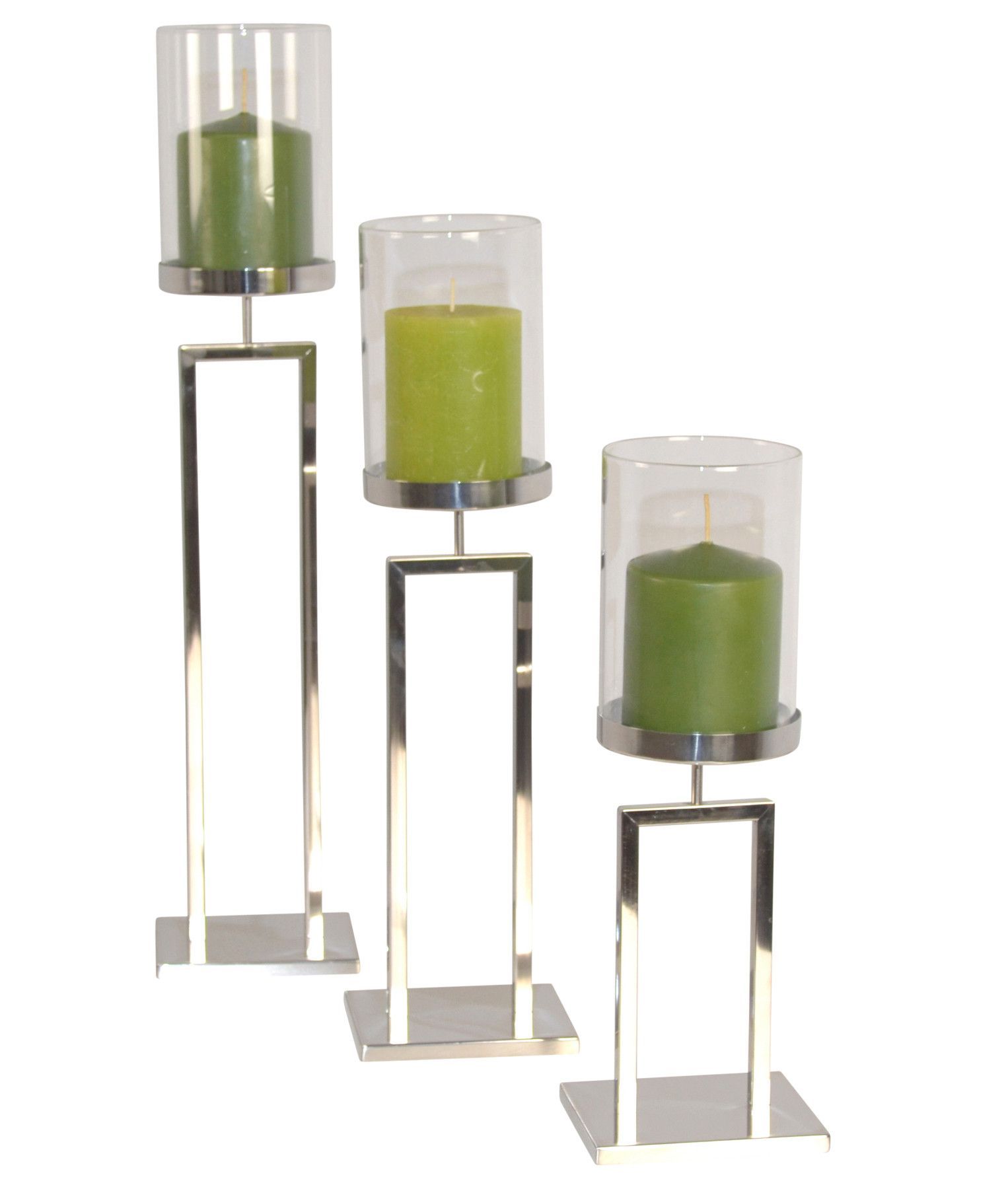 Kerzenständer/-halter, Windlicht im 3er-Set, Chrom