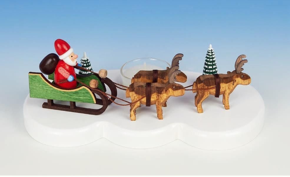 Kerzenständer Weihnachtsmann mit Rentieren bunt Größe 20 cm NEU Weihnachten