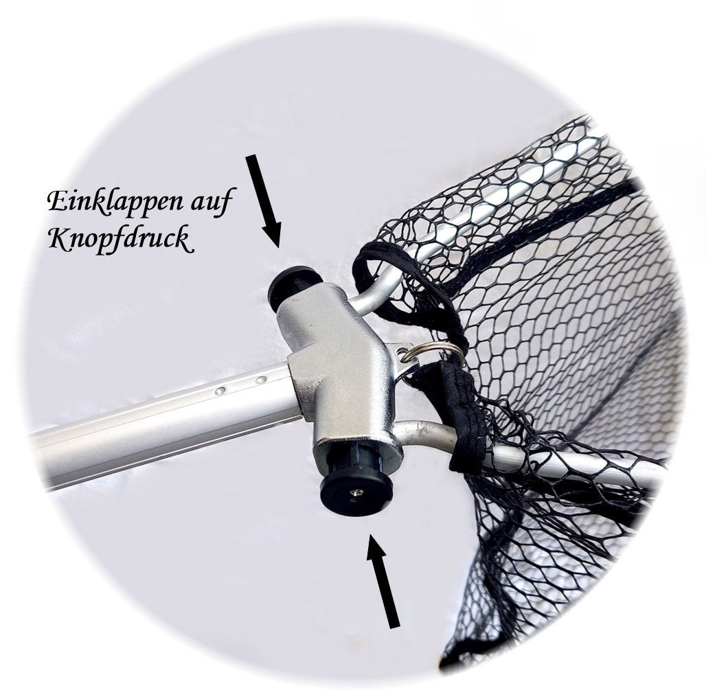 Kescher Alu 2,45m 2-TLG / Bügel 75x75cm Netz schwarz gummiert
