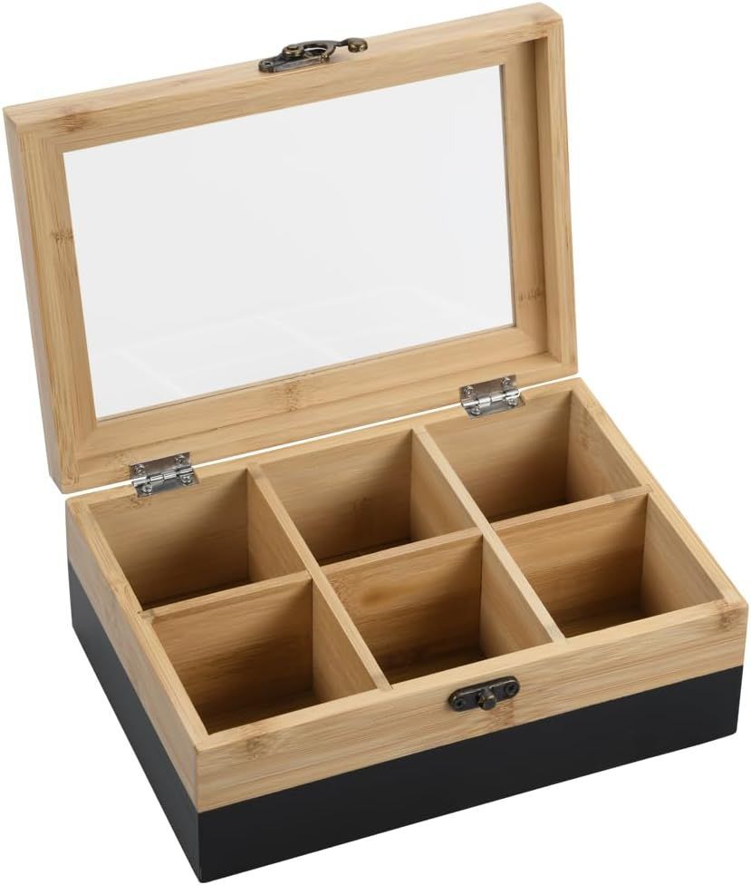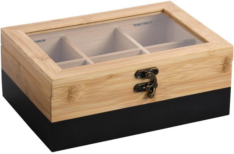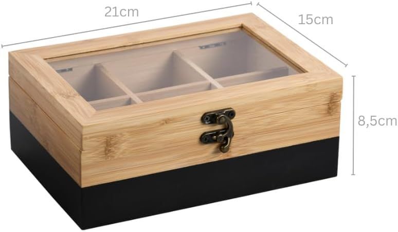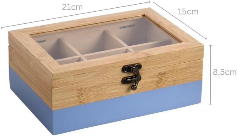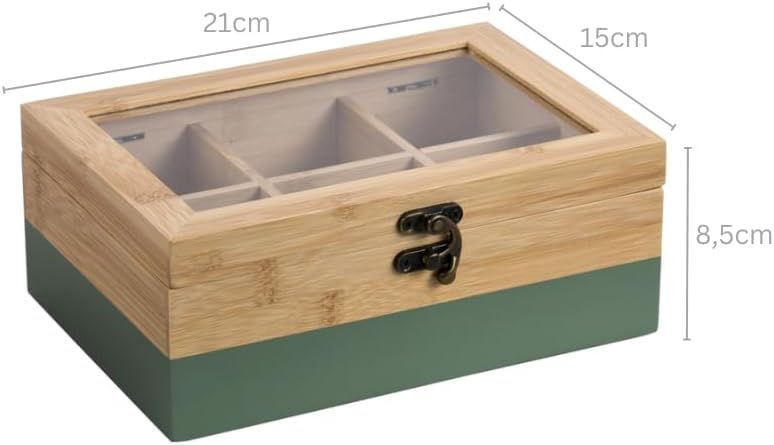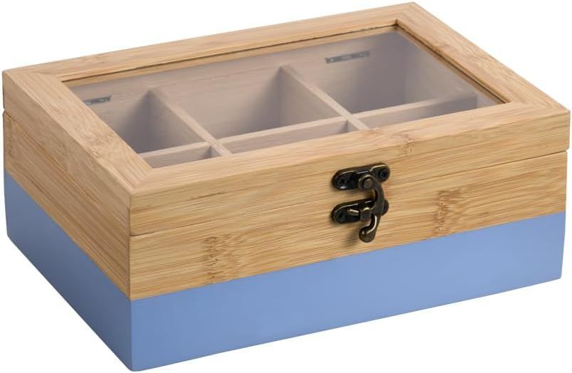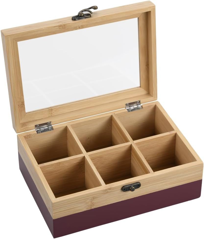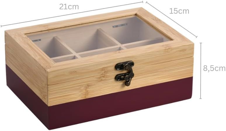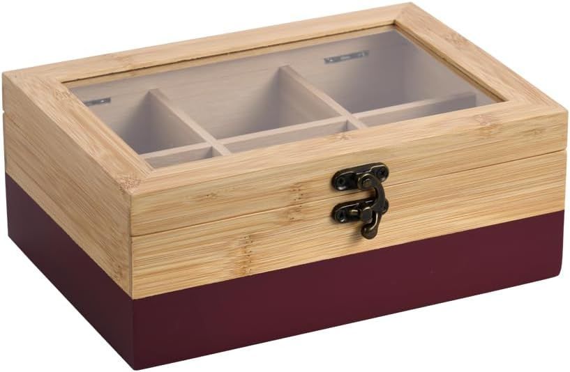 Kesper Kesper® Tee-Box Bambus 6 Fächer Sichtfenster Retroverschluss Beere-Natur