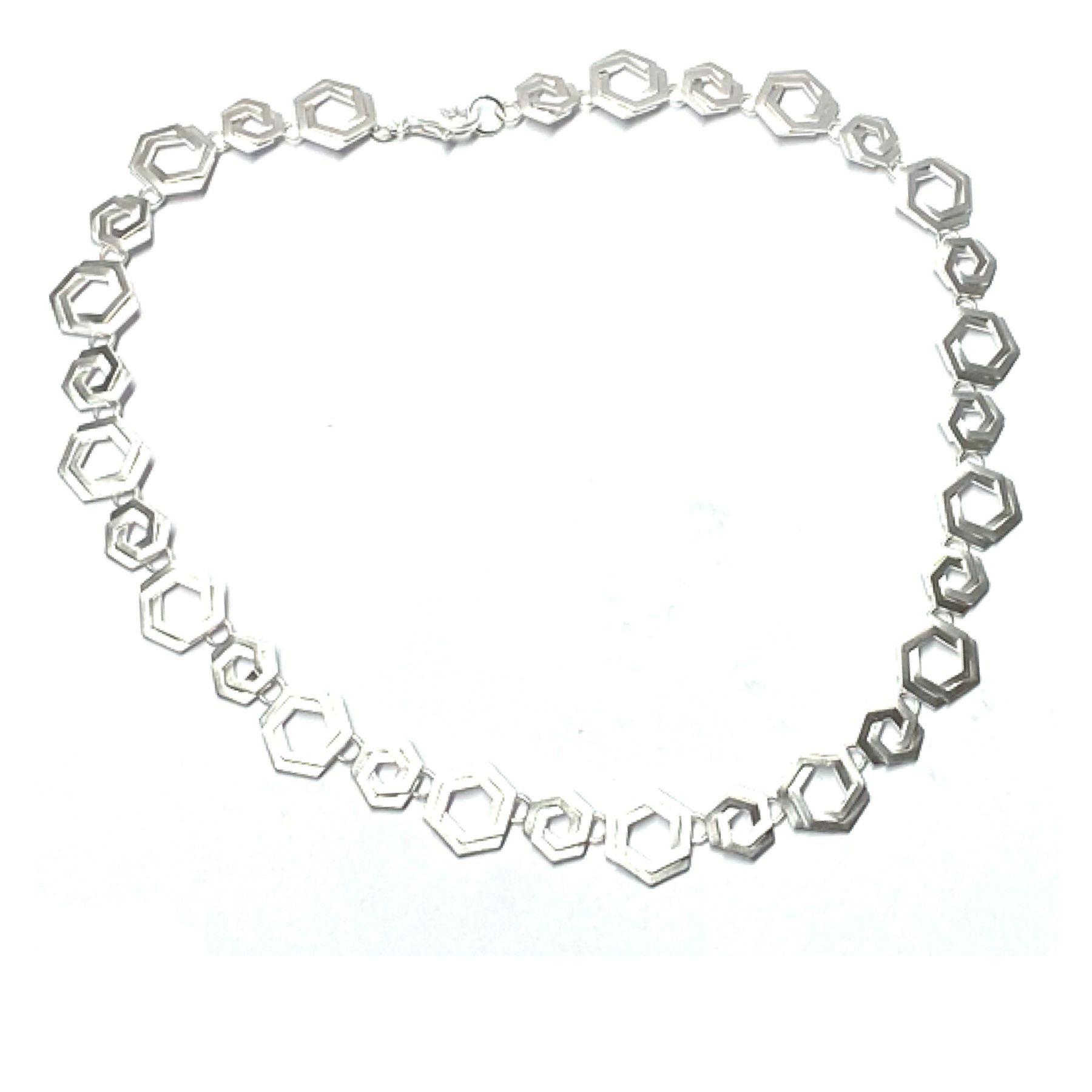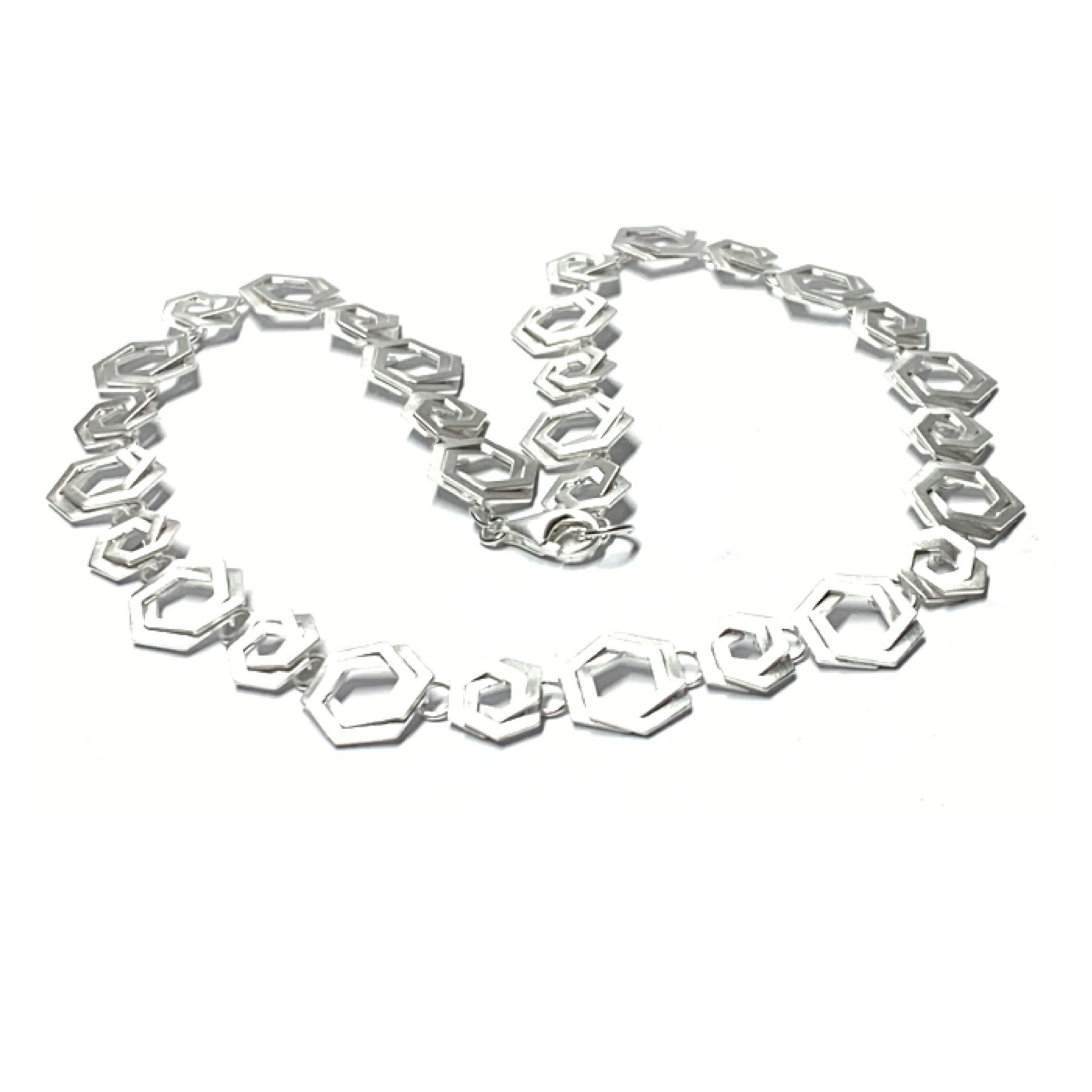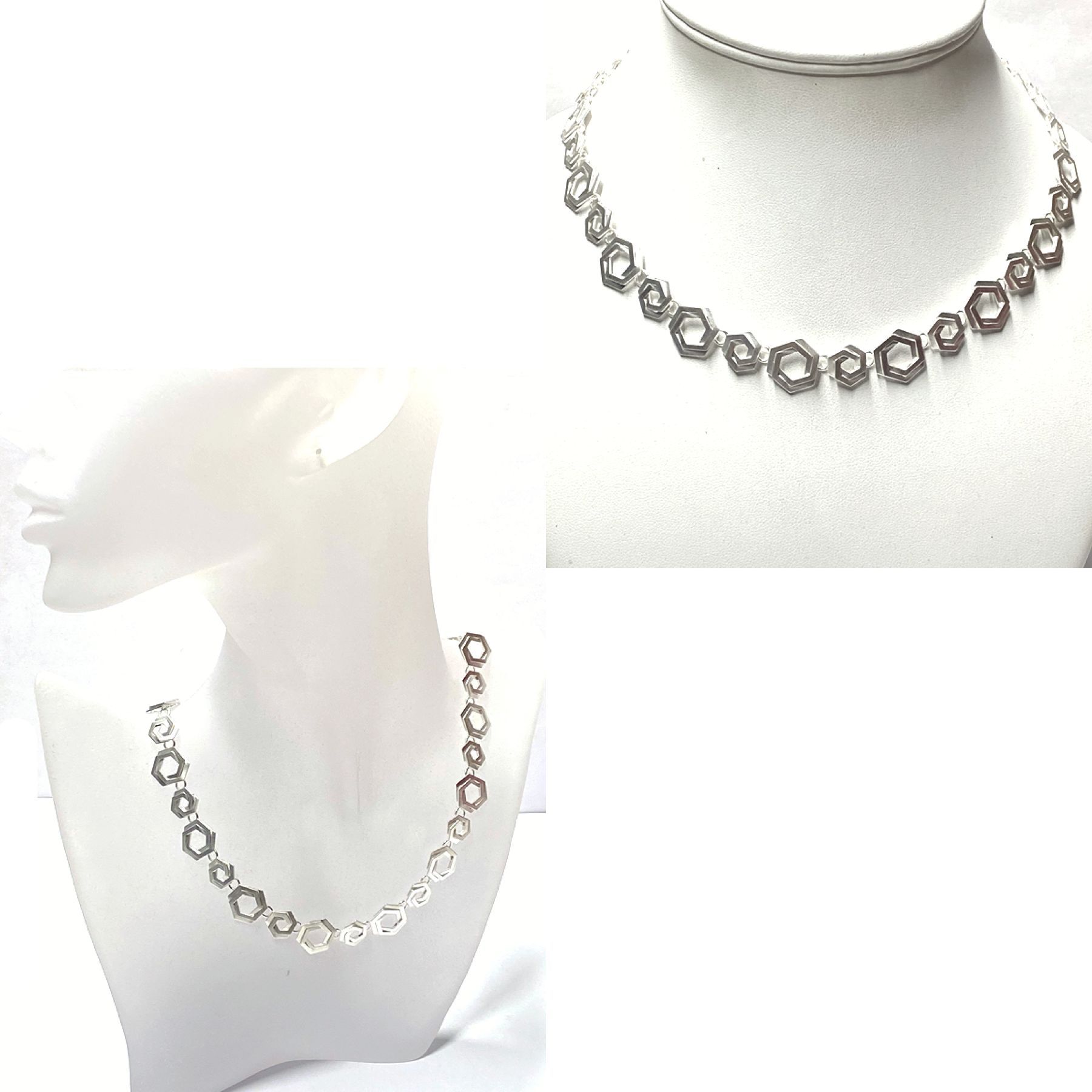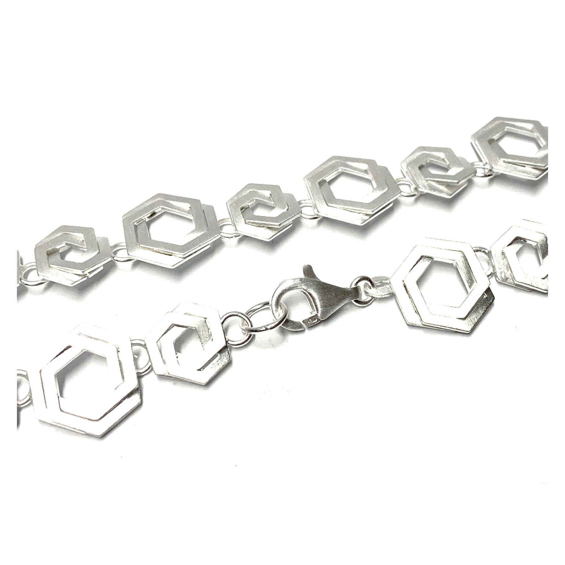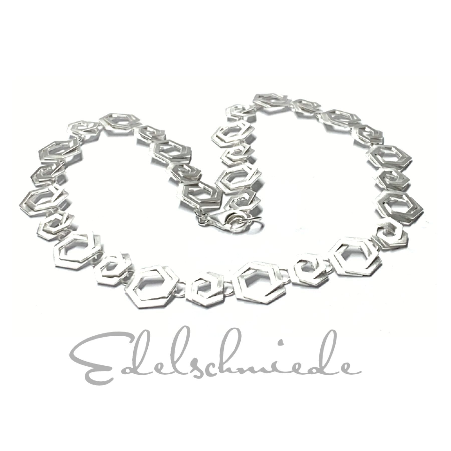 Kette 925/- Silber matt Sechseck umlaufend Collier Brautschmuck Silbercollier 43 cm