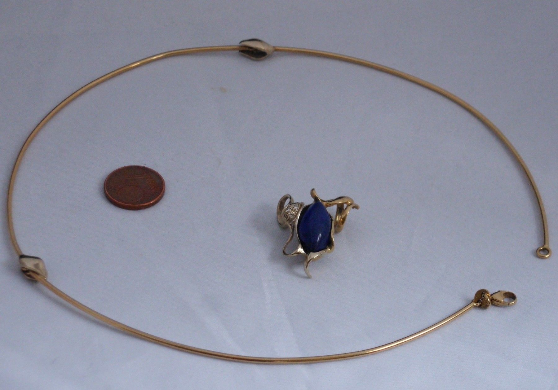 Kette Collier mit Lapis Diamant Anhänger Unikat 750 Gold 14 Gramm