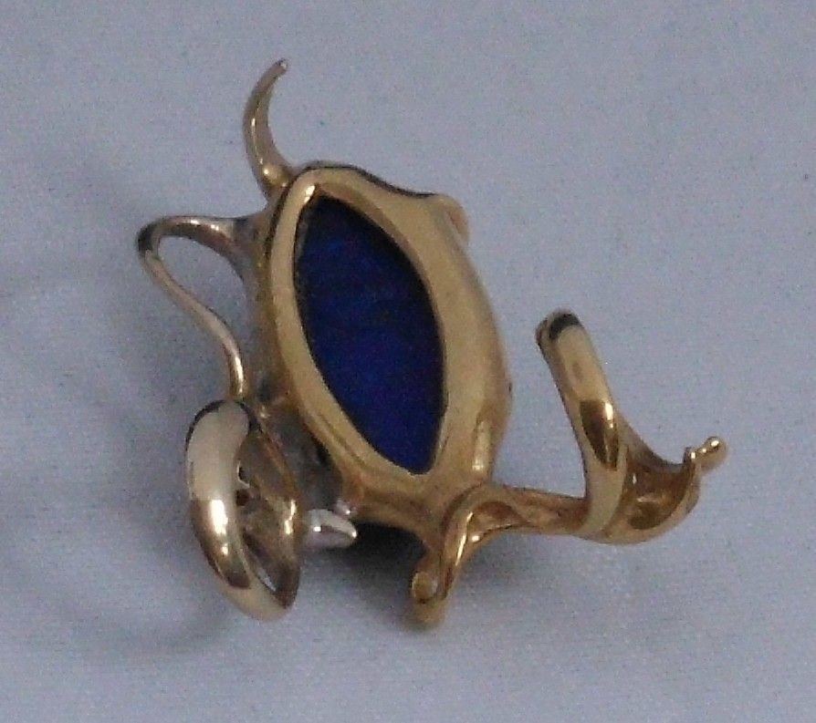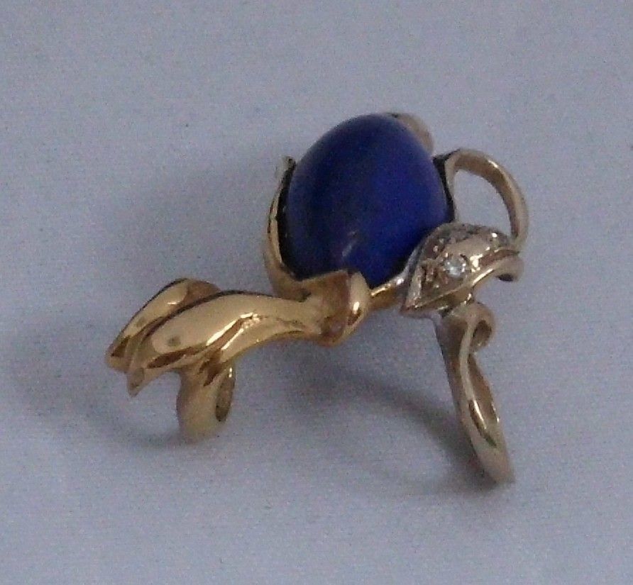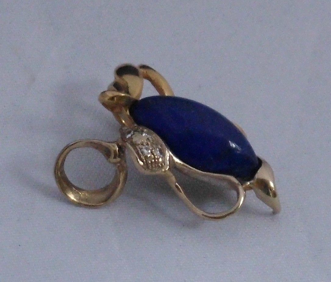 Das Collier ist stabil und solide gearbeitet und wiegt 14 Gramm. Der Durchmesser der Kette ist 12,5 cm x Pie macht das einen Umfang bzw. Länge von 39 cm und mit dem Karabiner Verschluss kommt man auf 40 cm. Der Anhänger ist eine Goldschmiede Arbeit mit einem 1,8 cm langen sehr schönen Lapis Lazuli mit zusätzlichen 4 Diamanten. Die Kette ist mit 750 gestempelt und den Anhänger habe ich geprüft weil er kein Stempel hat. Er ist aber auch aus 750 gold.