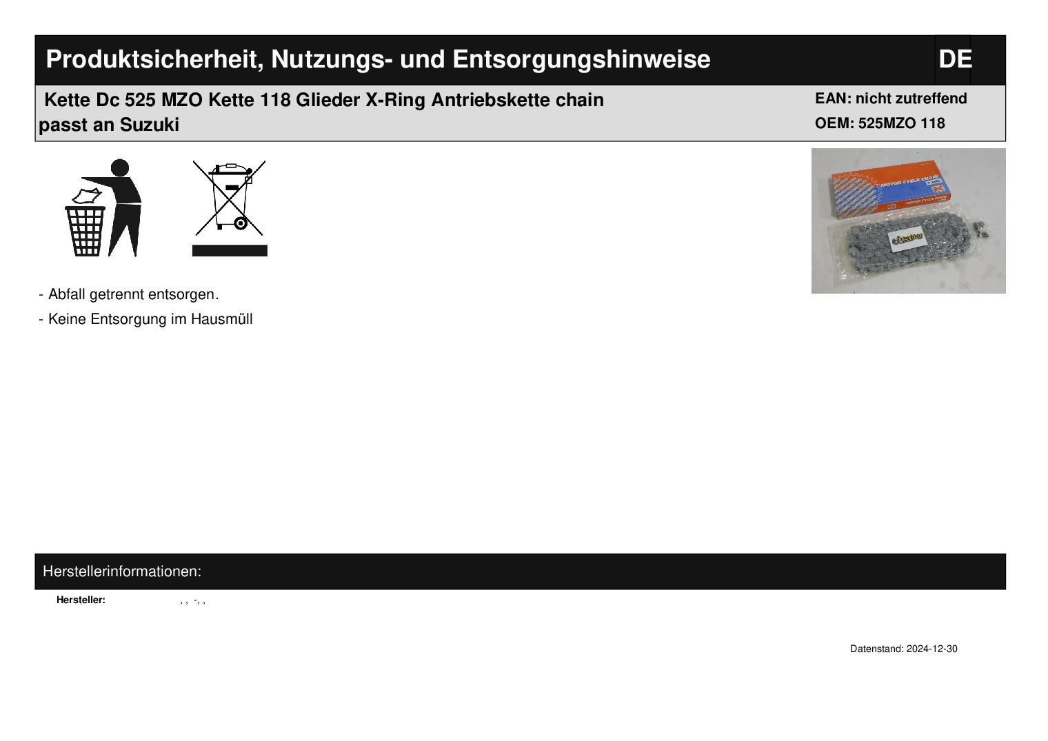 Kette Dc 525 MZO Kette 118 Glieder X-Ring Antriebskette chain passt an Suzuki
