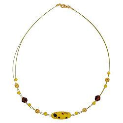 Gallay Kette Drahtkette mit Glasperlen Olive mattgelb-braun 42cm