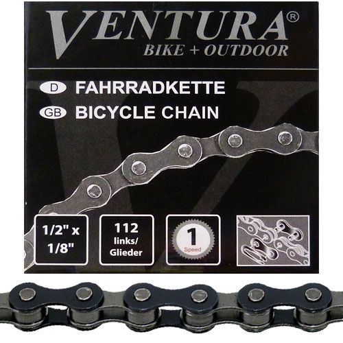 Kette Ventura 1/2 x 1/8 1fach, 112 Glieder, schwarz/braun, Messingschlager, 301125