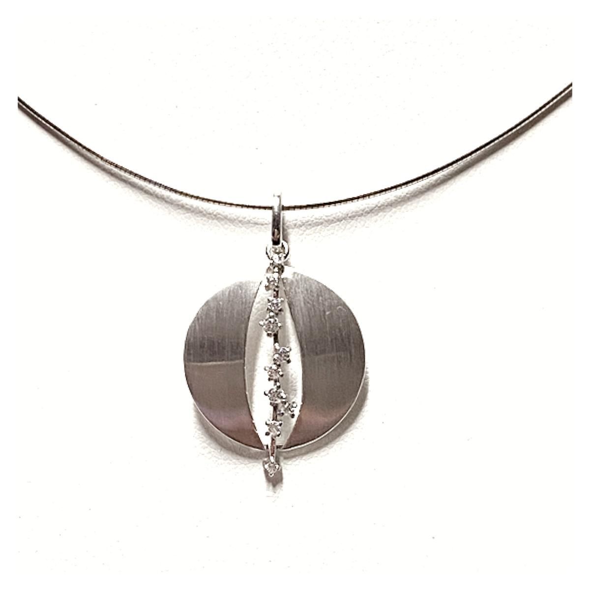 Kettenanhänger 925/- Silber matt mit Zirkonia Scheibe rund einfarbig