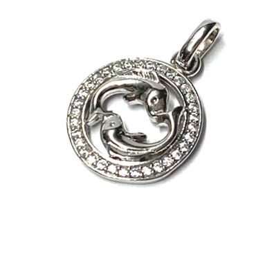 • Sternzeichen Kettenanhänger 925/- Sterling Silber rhodiniert Zirkonia - FISCHE