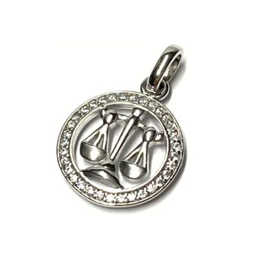 • Sternzeichen Kettenanhänger 925/- Sterling Silber rhodiniert Zirkonia - WAAGE