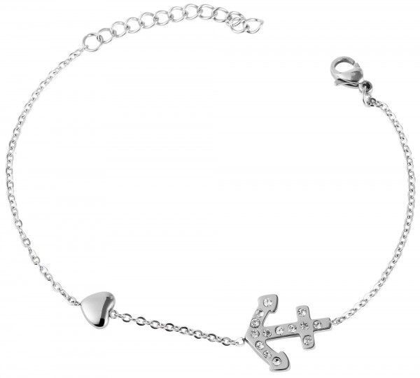 Kettenarmband Edelstahl Anker- / Herzanhänger silberfarben Karabinerverschluss