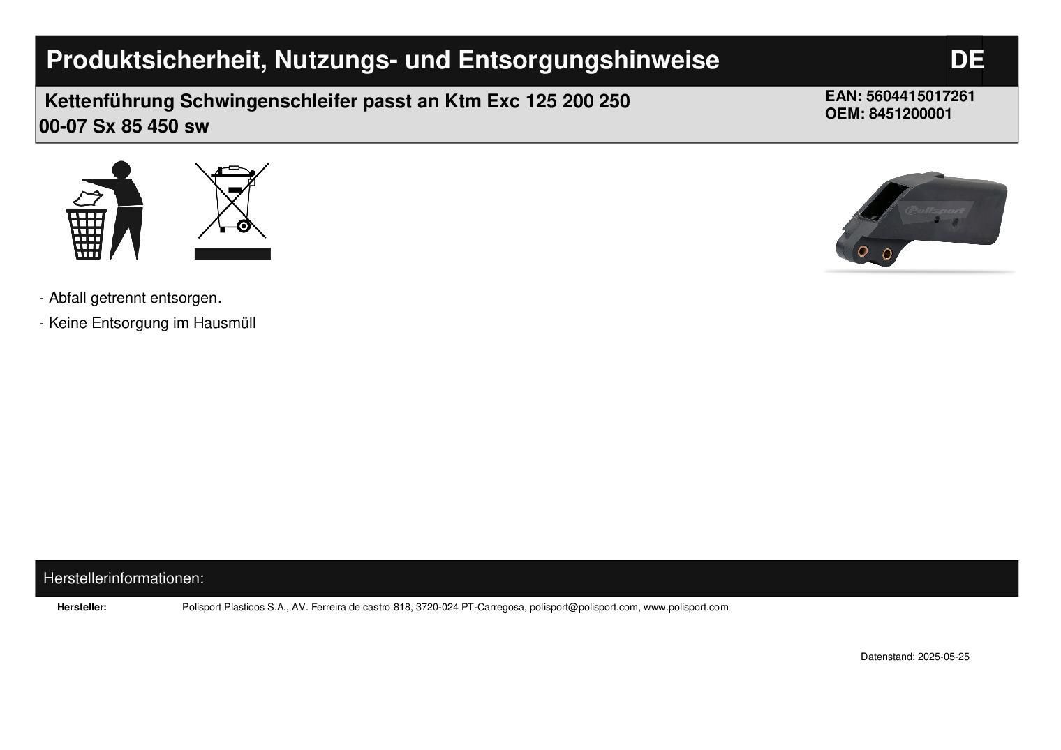 Polisport Kettenf?hrung Schwingenschleifer passt an Ktm Exc 125 200 250 00-07 Sx 85 450 sw