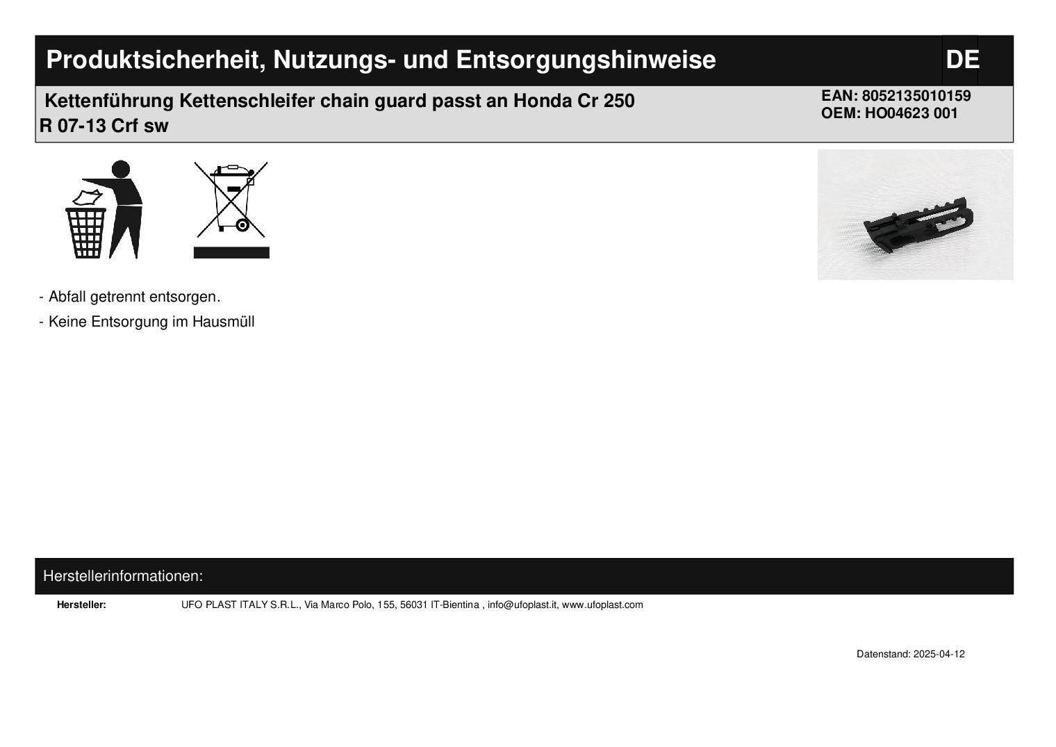 Kettenführung Kettenschleifer chain guard passt an Honda Crf 250 X 07-17 450 sw