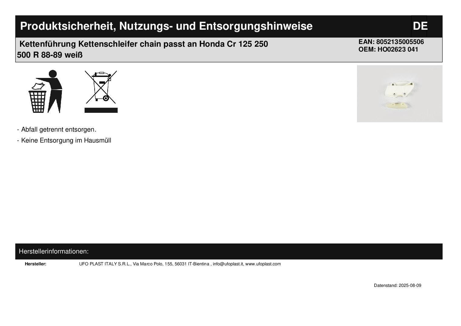 Kettenführung Kettenschleifer chain passt an Honda Cr 125 250 500 R 88-89 weiß