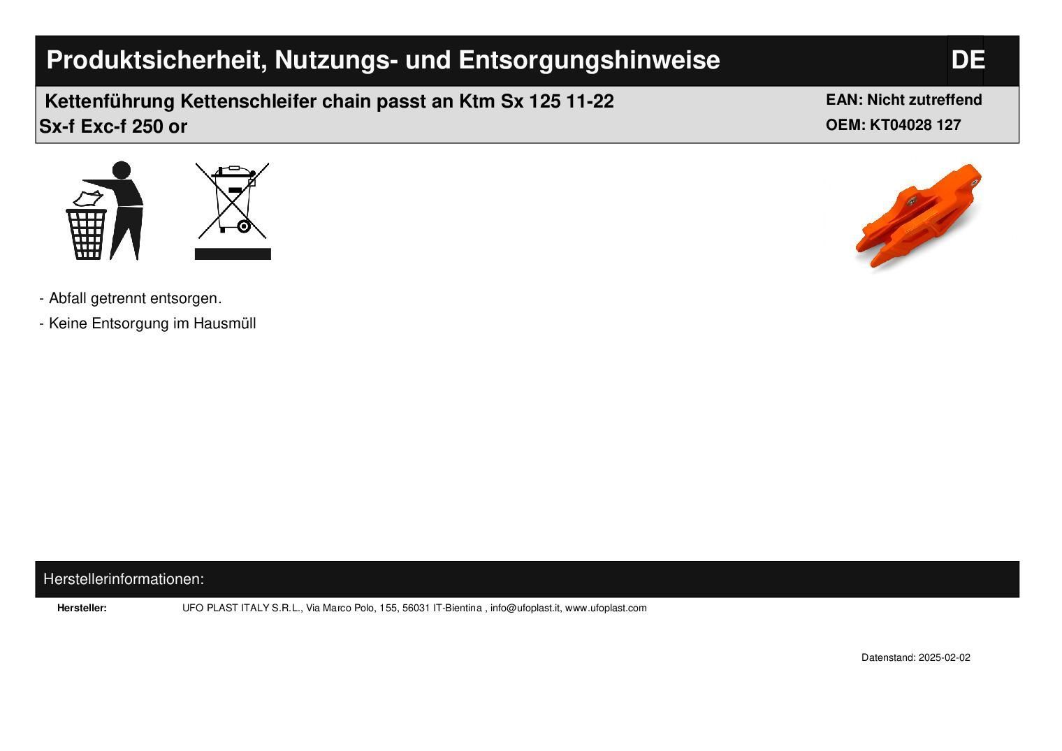Kettenführung Kettenschleifer chain passt an Ktm Sx 125 11-22 Sx-f Exc-f 250 or