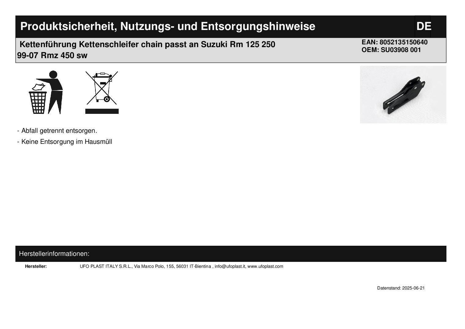Kettenführung Kettenschleifer chain passt an Suzuki Rm 125 250 99-07 Rmz 450 sw