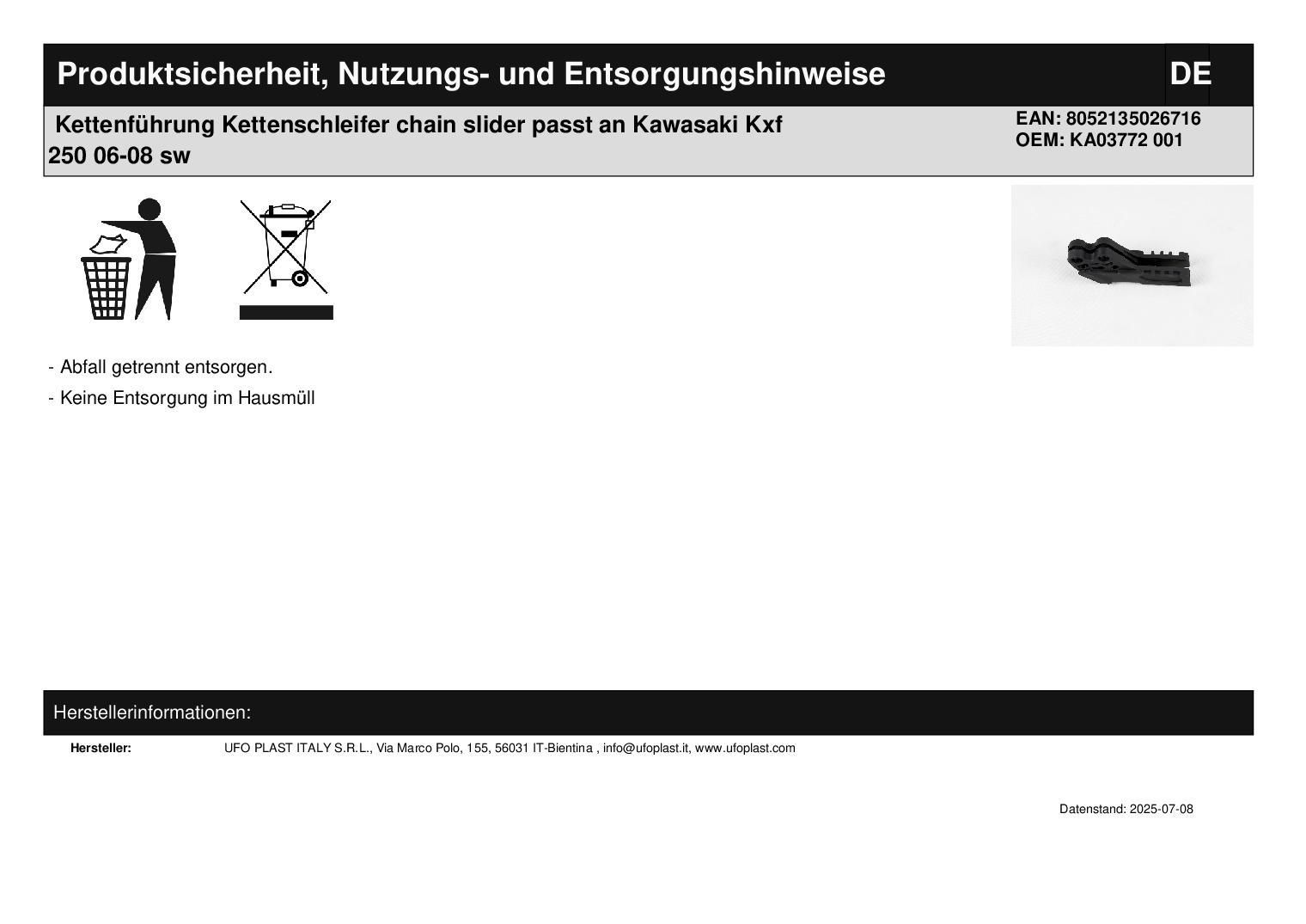 Kettenführung Kettenschleifer chain slider passt an Kawasaki Kxf 250 06-08 sw