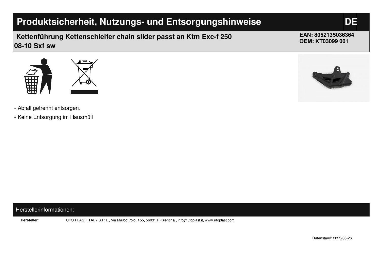 Kettenführung Kettenschleifer chain slider passt an Ktm Exc-f 250 08-10 Sxf sw