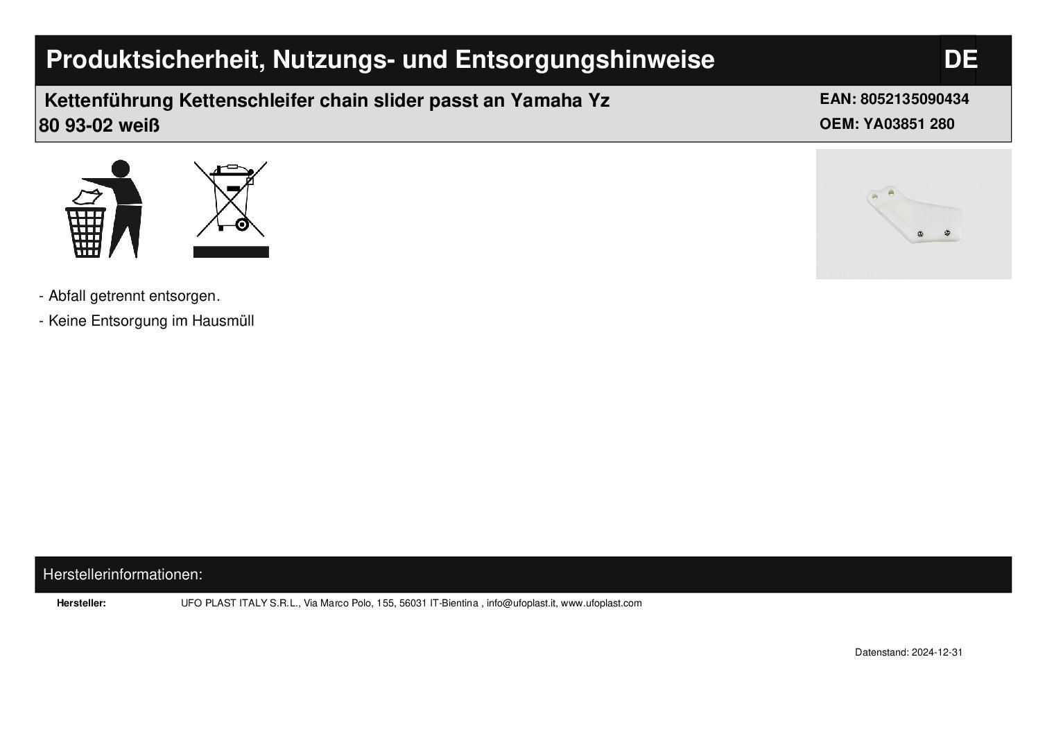 Kettenführung Kettenschleifer chain slider passt an Yamaha Yz 80 93-02 weiß