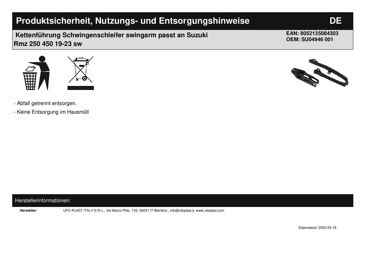 Kettenführung Schwingenschleifer swingarm passt an Suzuki Rmz 250 450 19-23 sw