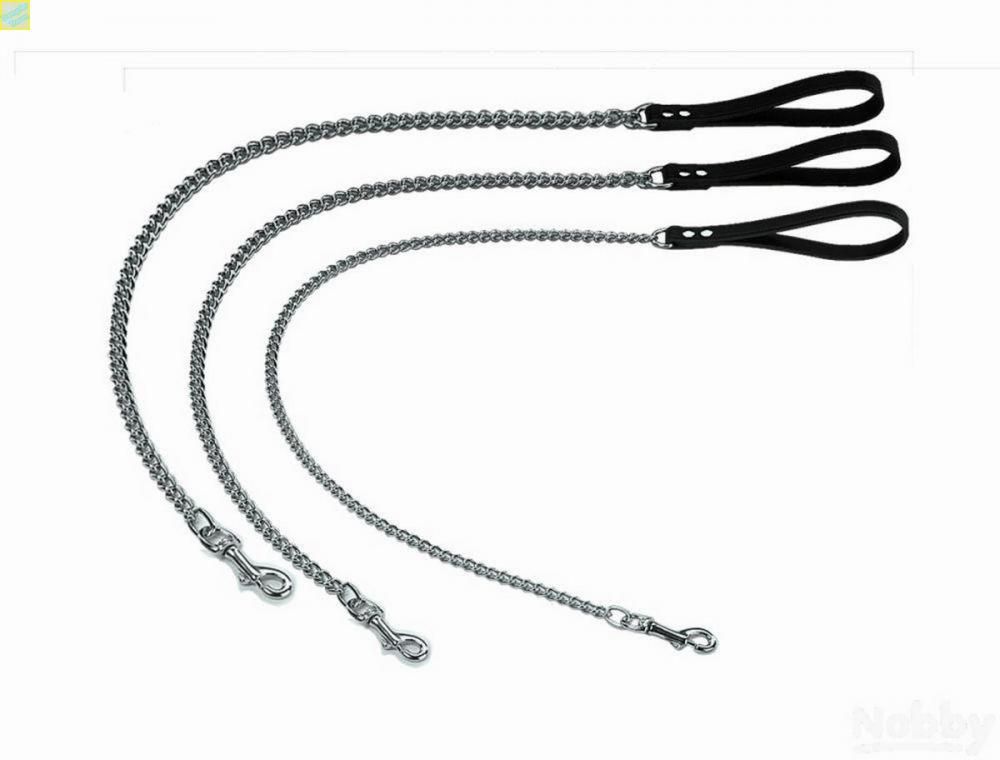 Kettenleine mit Handschlaufe aus Leder ? 4 Farben, 2 Längen, 3 Breiten zur Wahl - Bez
