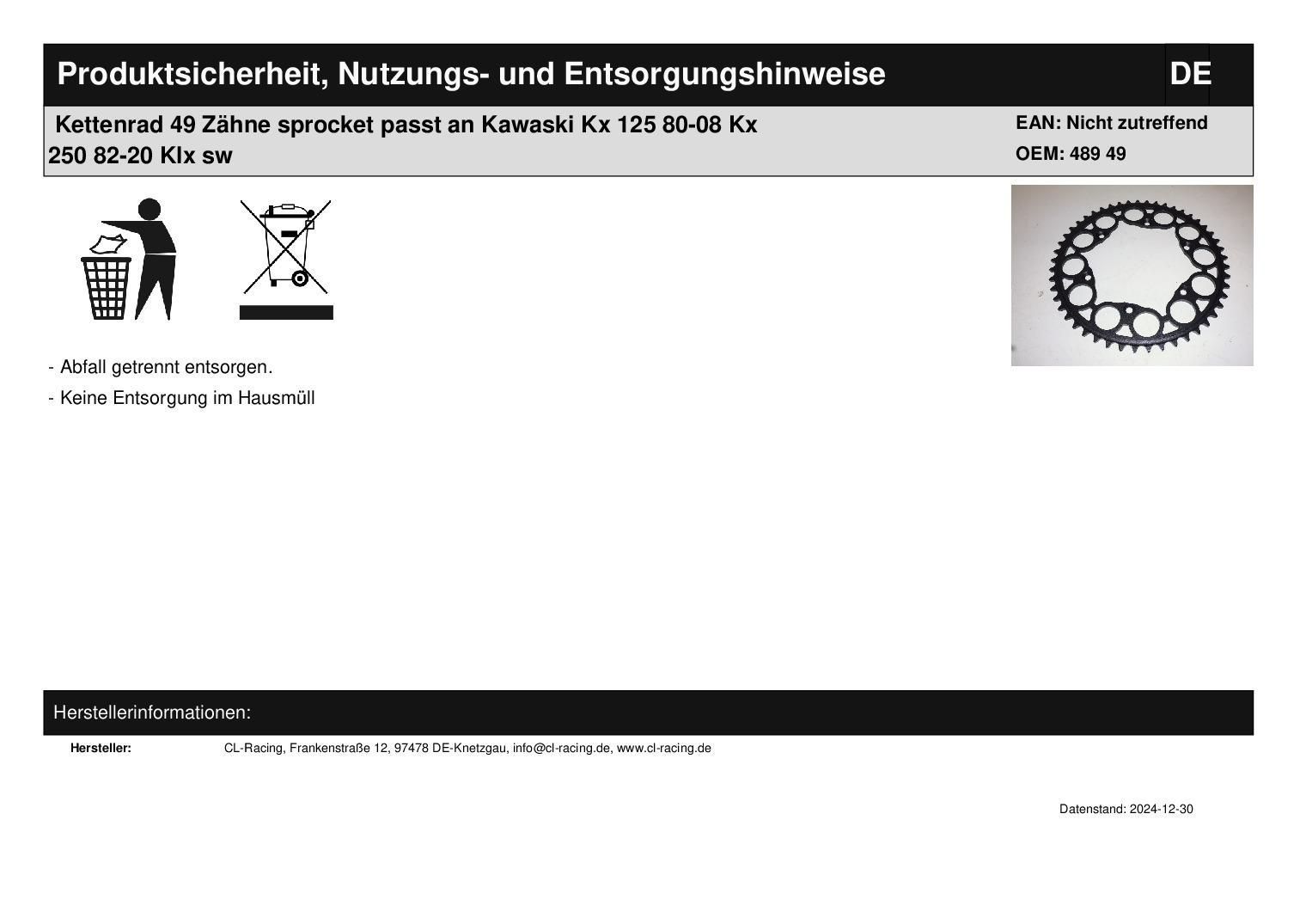 Kettenrad 49 Zähne sprocket passt an Kawaski Kx 125 80-08 Kx 250 82-20 Klx sw