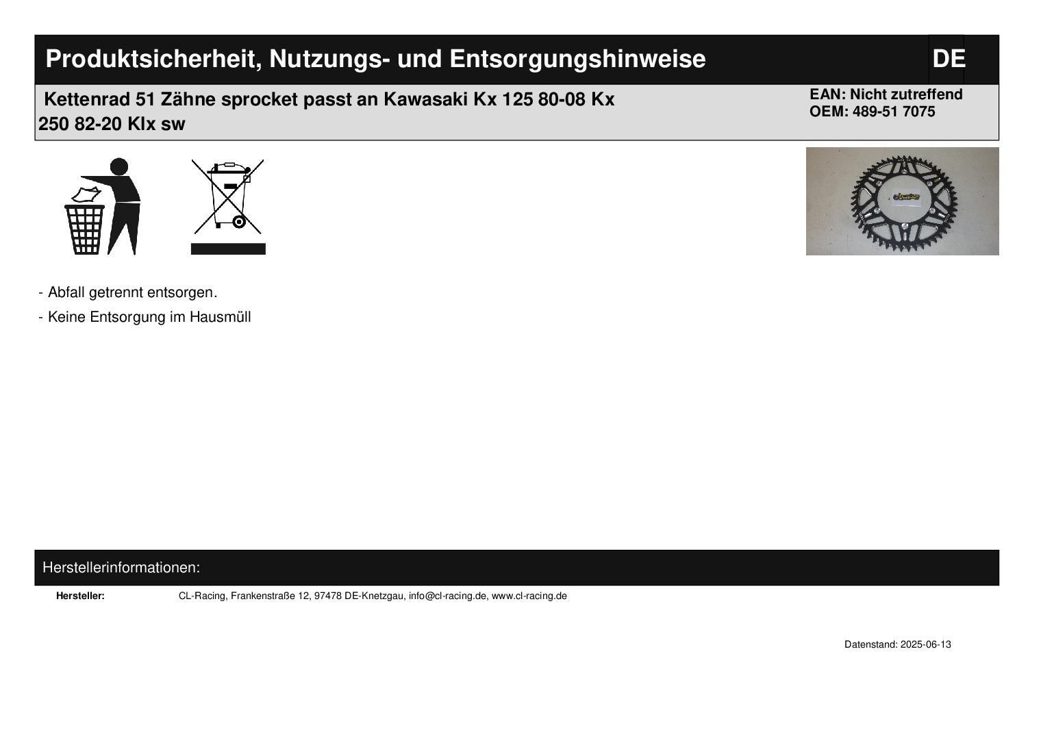 Kettenrad 51 Zähne sprocket passt an Kawasaki Kx 125 80-08 Kx 250 82-20 Klx sw
