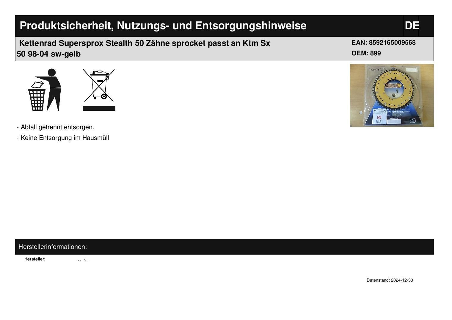Kettenrad Supersprox Stealth 50 Zähne sprocket passt an Ktm Sx 50 98-04 sw-gelb